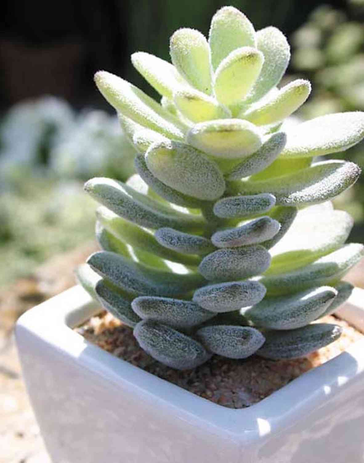 Le faux Pachyphytum oviferum ROBBIE est fidèlement reproduit et n'a rien à envier aux vrais modèles en termes de forme et de couleur.
