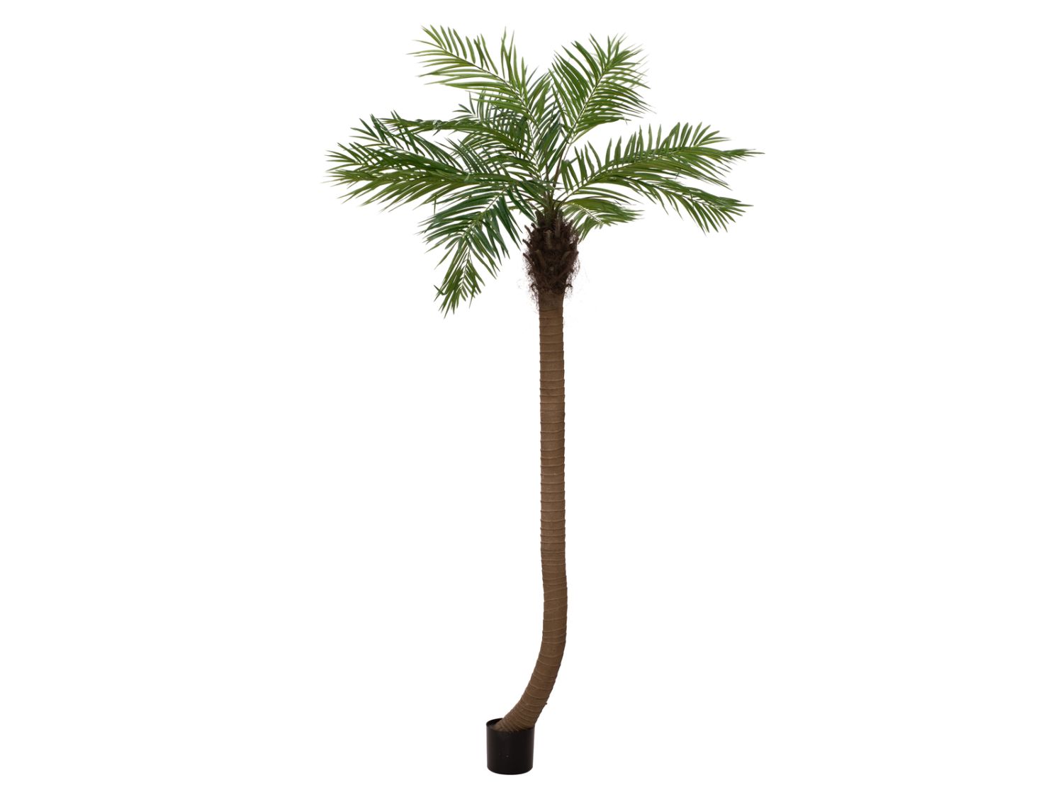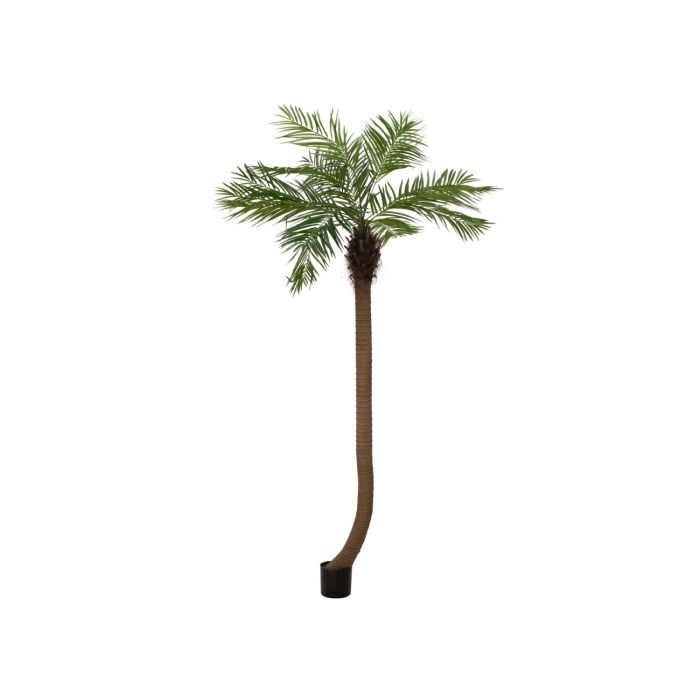Le faux palmier MANJANA a une hauteur considérable d'environ 240 cm et possède un tronc imposant et courbé. Grâce à sa hauteur, le palmier est particulièrement bien mis en valeur dans les grands halls ou locaux, comme par exemple lors de foires expositions, dans les centres commerciaux, les thermes ou même chez vous, par exemple dans une galerie, etc.