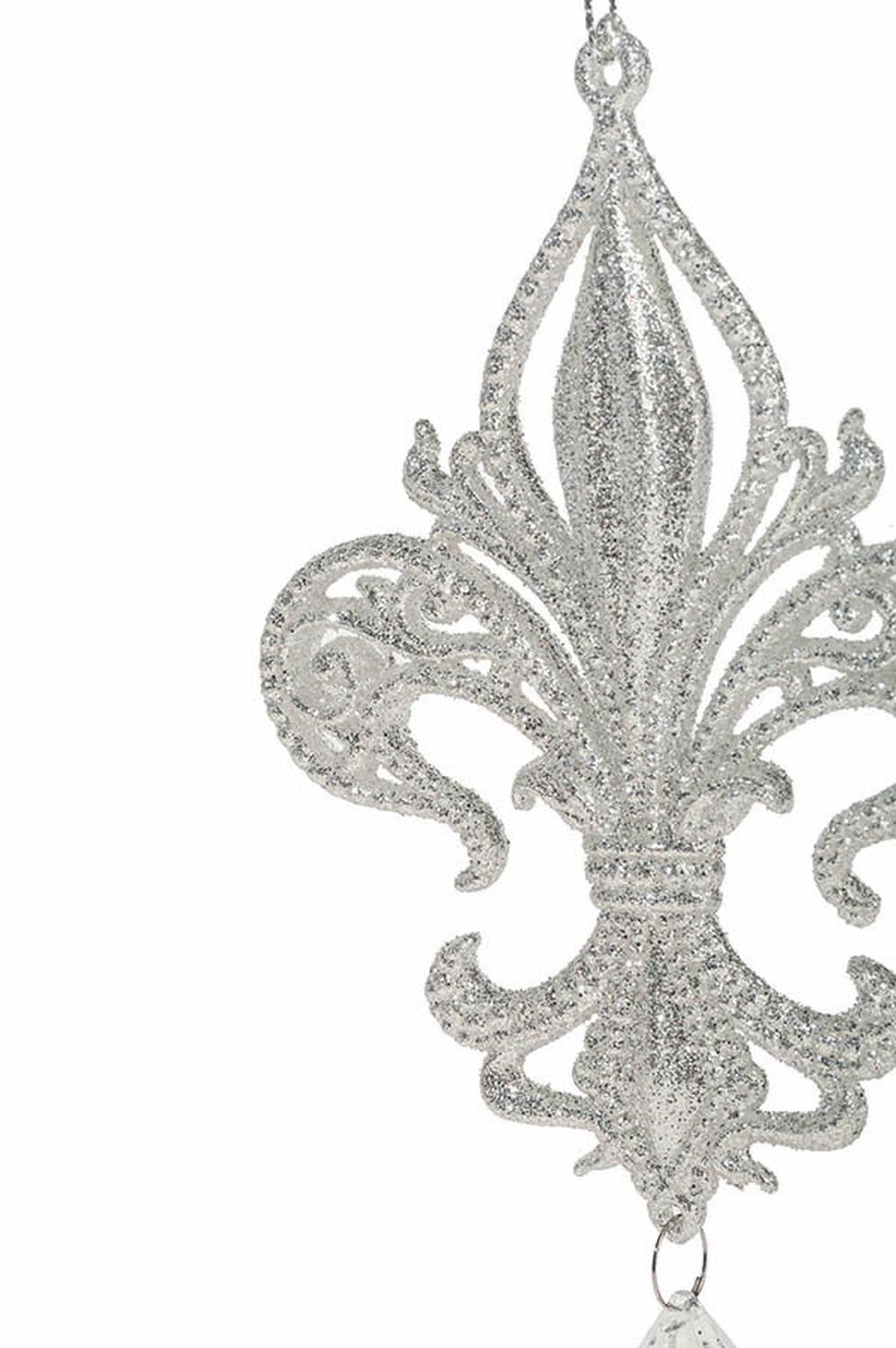 Pendentif acrylique, Feur de lys AZARIEL, paillettes, argent, 15cm