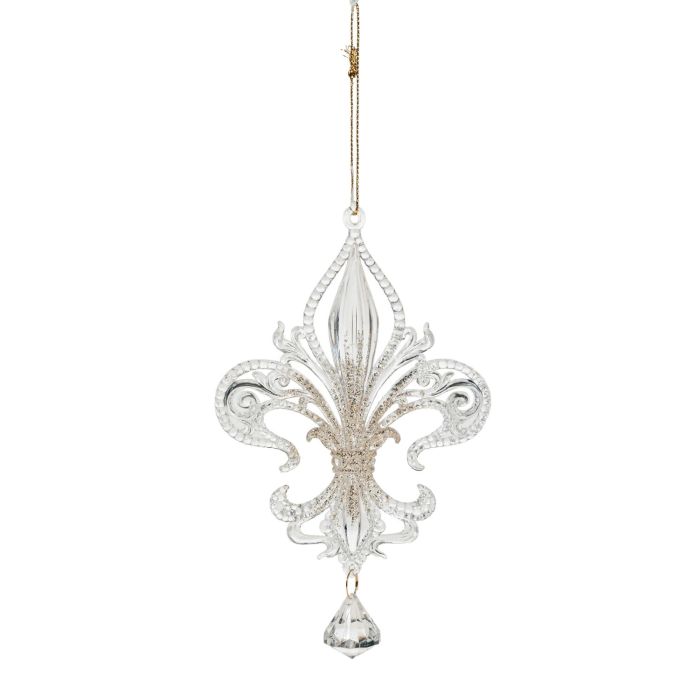 Pendentif acrylique Lys héraldique AZARIEL, paillettes, transparent-or, 15cm