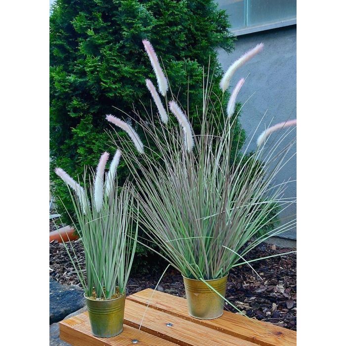 Pennisetum alopecuroides artificiel SVERRE avec des panicules, pot en zinc, rose-vert, 80cm