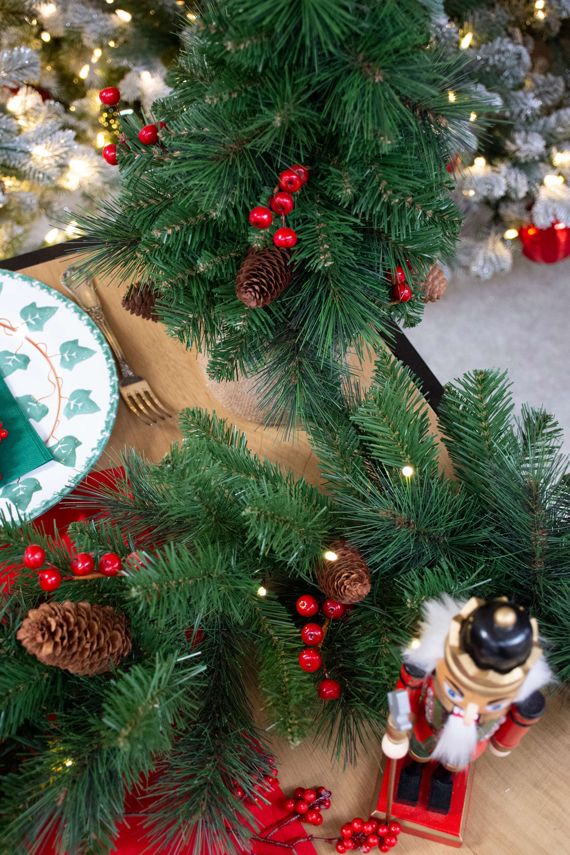 - Constitué d'env. 75 branches artificielles pliables de couleur verte, orné de baies rouges et de pommes de pin