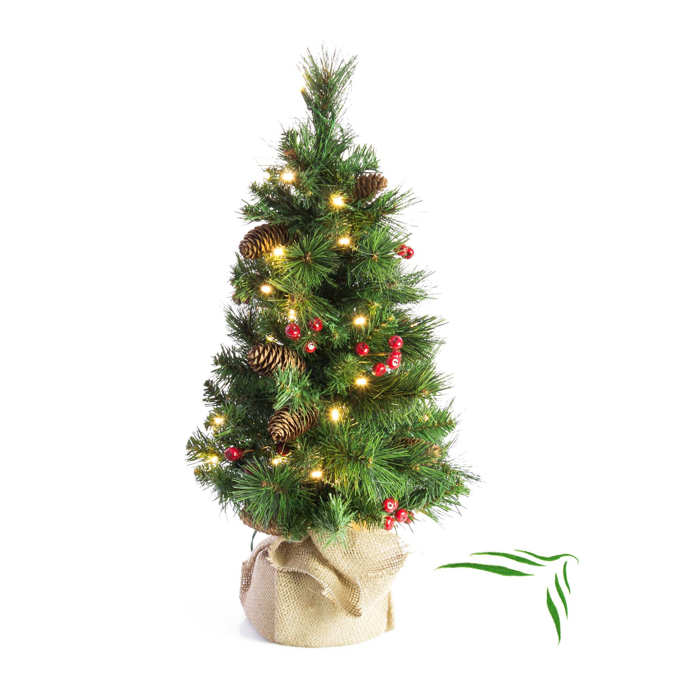 L'arbre de Noël artificiel BUCAREST est orné de baies rouges, de pommes de pin et de 35 lumières . Les branches artificielles vertes sont pliables et solidement fixées sur le tronc. La livraison de l'arbre de Noël artificiel d'environ 60 cm de haut et d'environ 35 cm de large s'effectue dans son sac décoratif marron et peut être placé rapidement et facilement à l'endroit souhaité.
