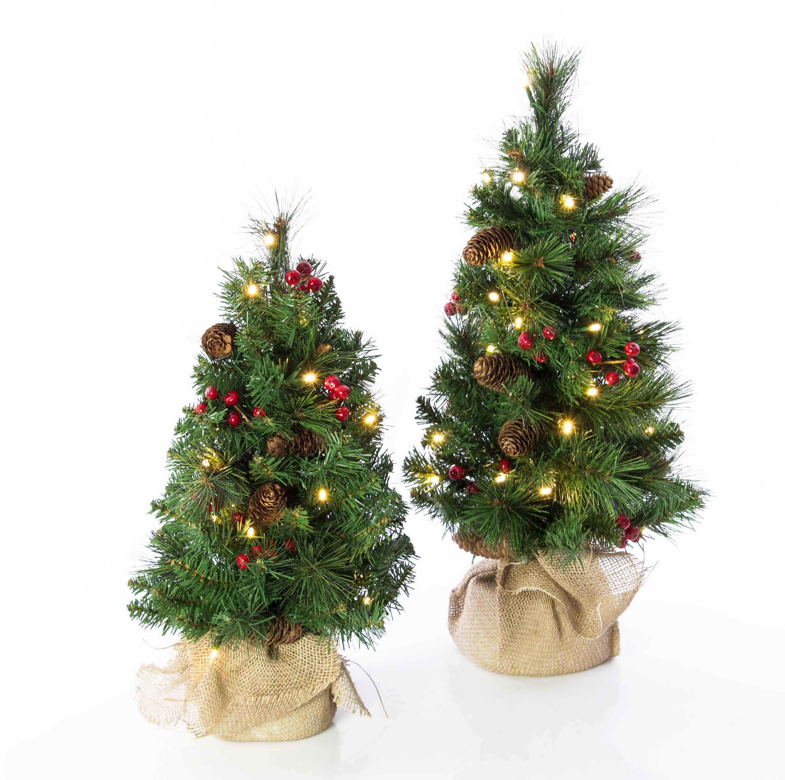 Petit sapin de Noël décoratif BUCAREST orné d'une guirlande lumineuse