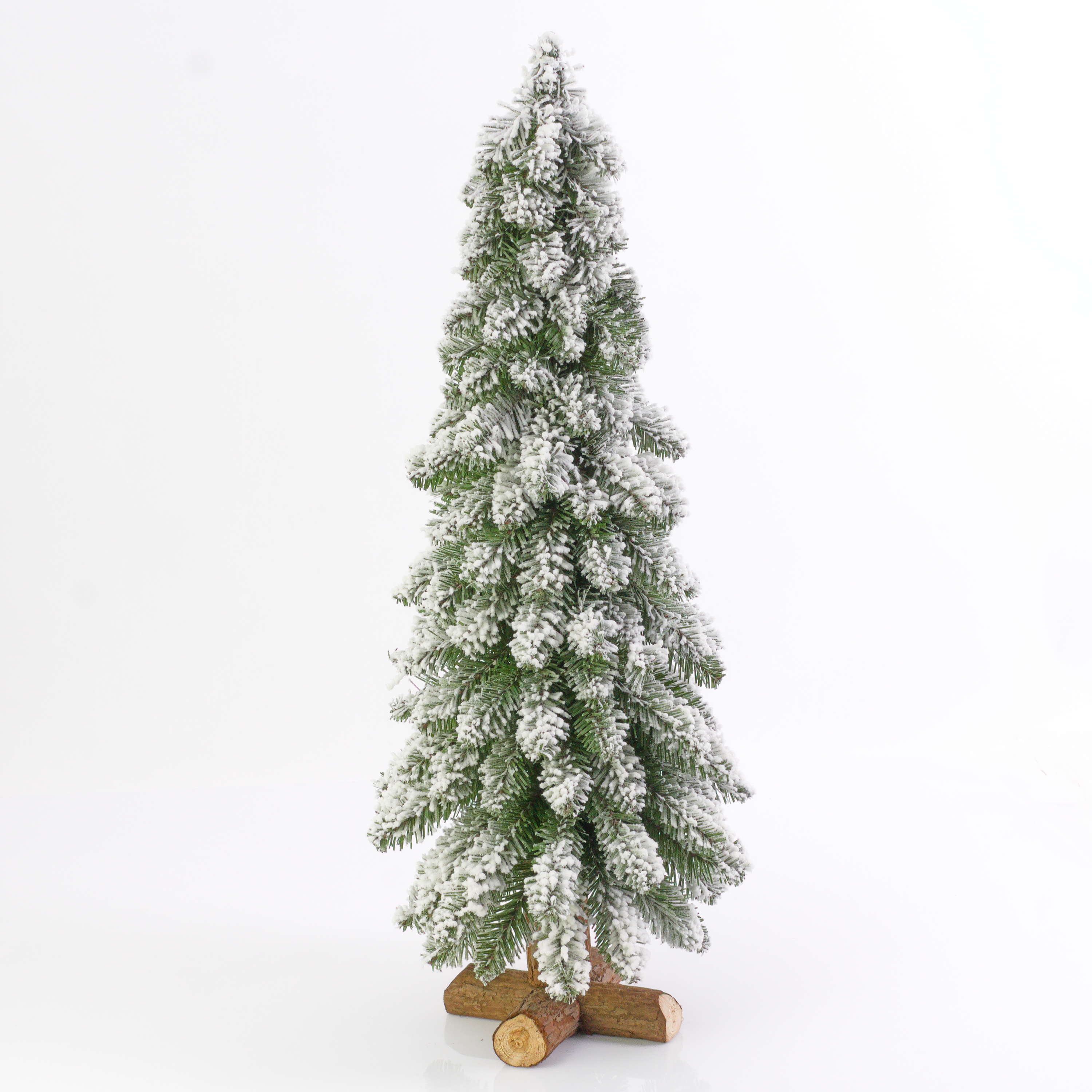 Sapin artificiel MONTRÉAL de la nouvelle collection artplants mesurant environ 75 cm de haut et 30 cm de diamètre. Les branches brunes sont exclusivement pourvues d’aiguilles vertes en PVC recouvertes de neige artificielle.