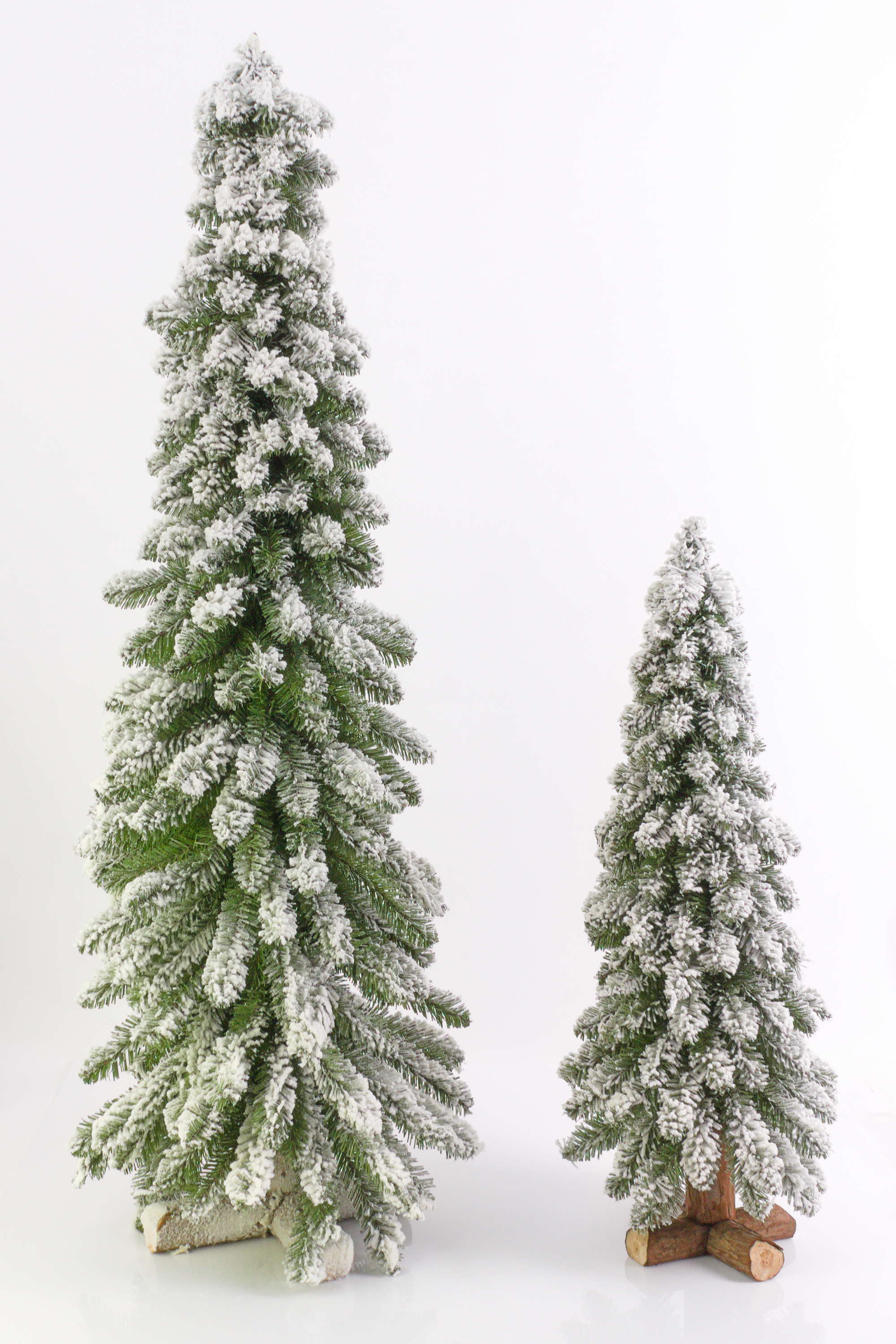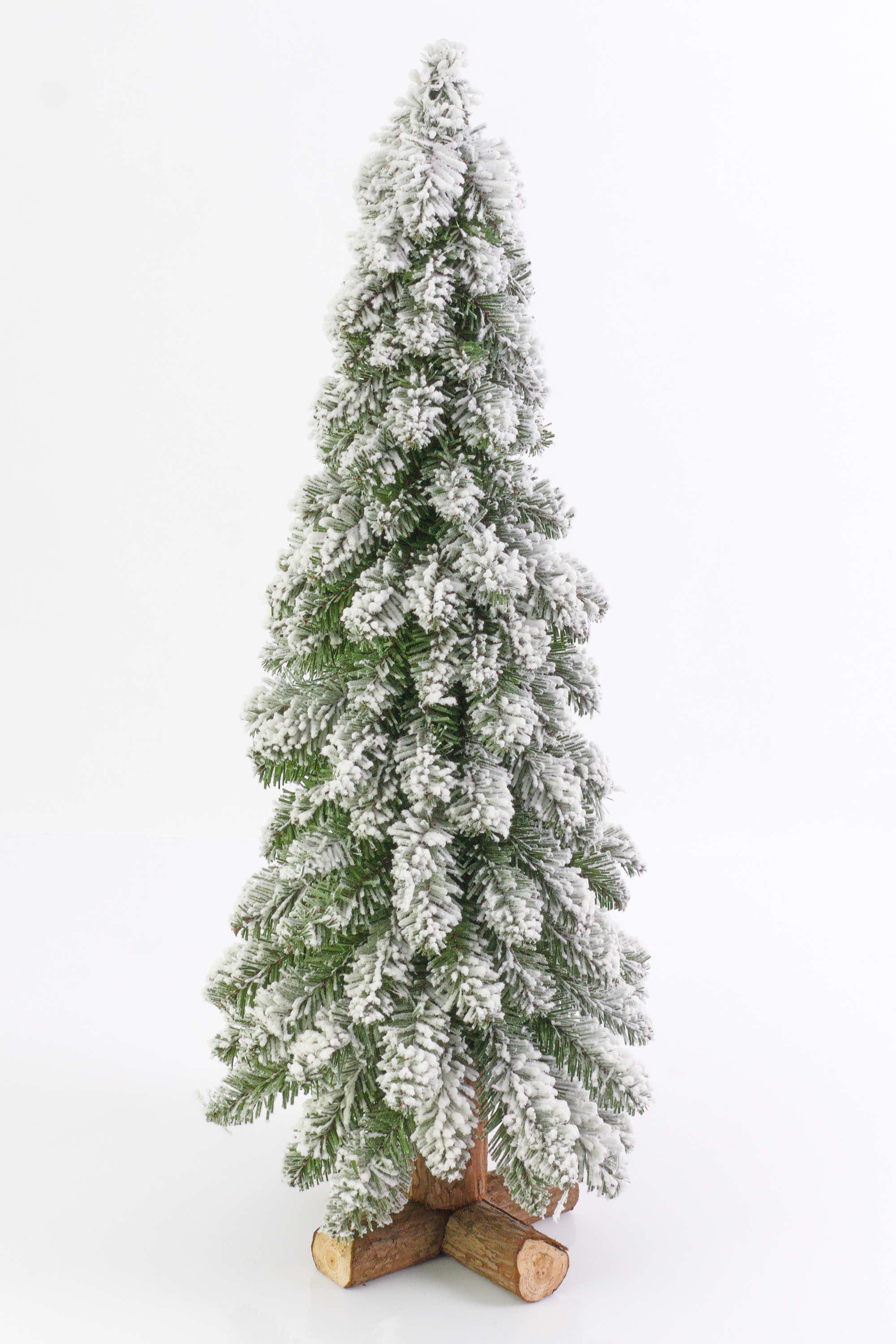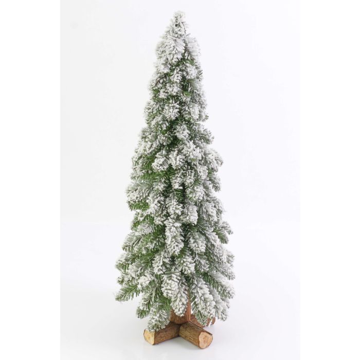 Sapin artificiel MONTRÉAL de la nouvelle collection artplants mesurant environ 90 cm de haut et 35 cm de diamètre. Les branches brunes sont exclusivement pourvues d’aiguilles vertes en PVC recouvertes de neige artificielle.