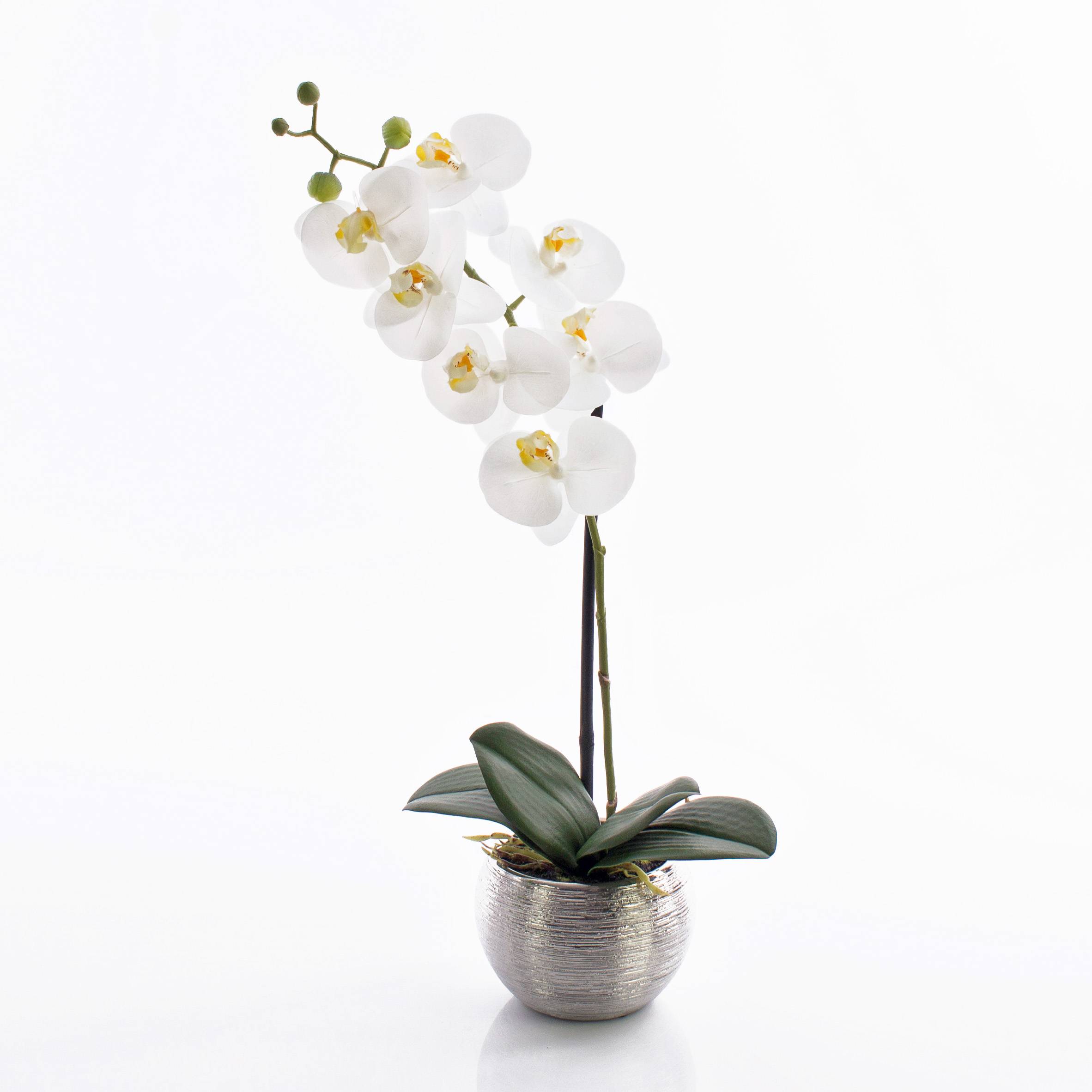 Orchidée Phalaenopsis en soie EMILIA en pot décoratif sphérique