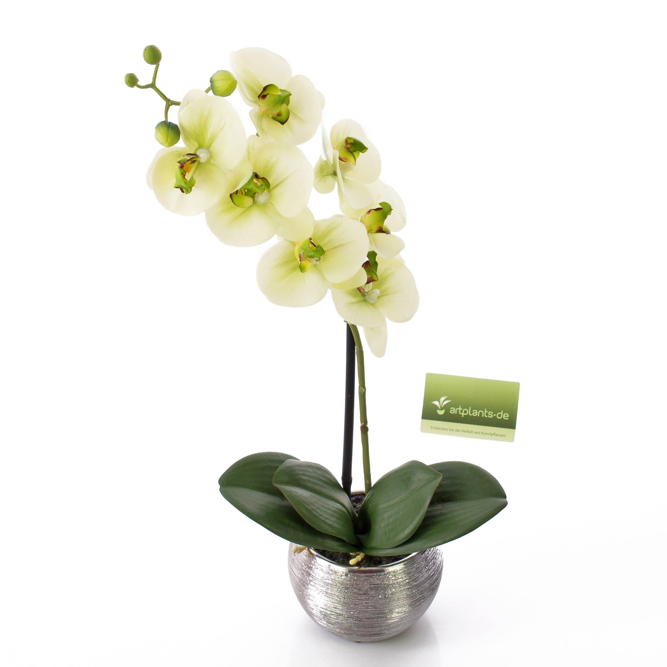 Phalaenopsis artificiel EMILIA, pot décoratif, crème-vert, 45cm, Ø8cm