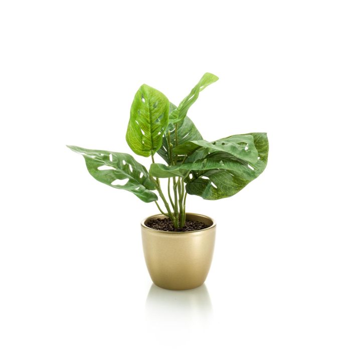 Philodendron artificiel Monstera Deliciosa PUYA, pot en céramique doré, 30cm