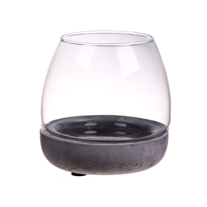 Photophore en verre TONDA, socle en béton, transparent, 10,5cm, Ø10cm