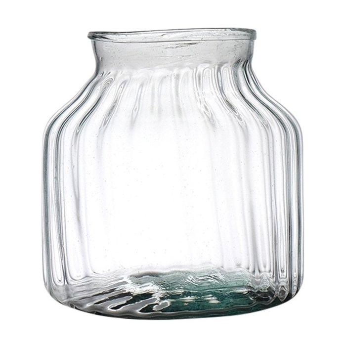 Photophore QUINN EARTH en verre recyclé, avec rainures, vert-transparent, 20cm, Ø21cm