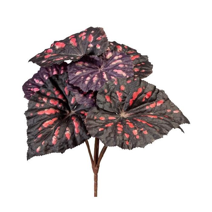 Plante artificielle Begonia rex MELDINA, piquet, noir-rouge, 25cm