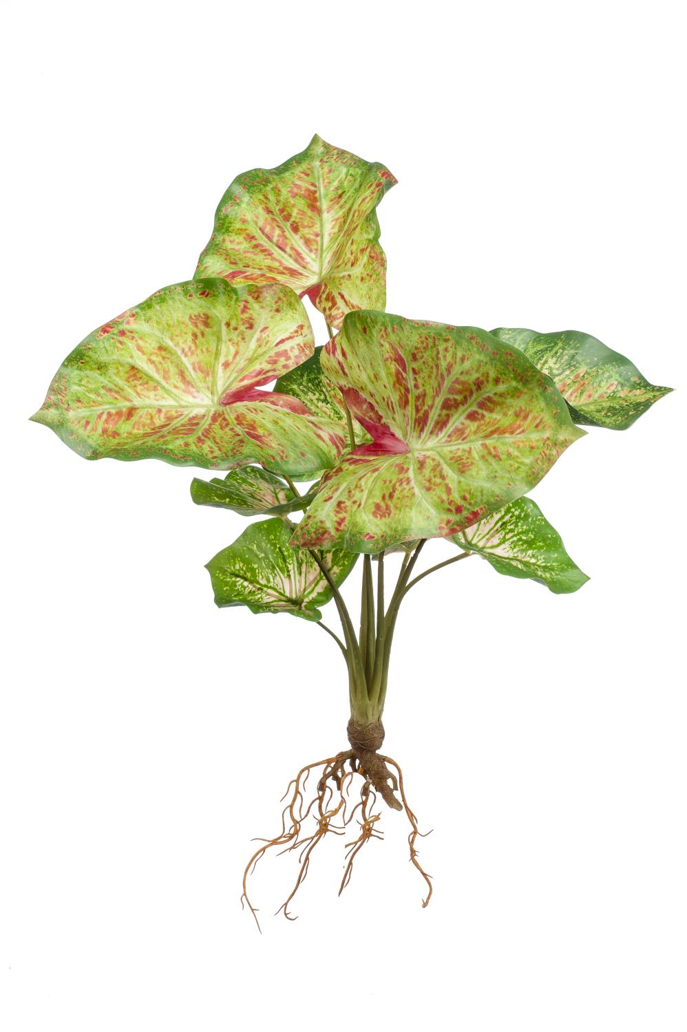 Plante artificielle Syngonium podophyllum AKAYU, piquet, racines, vert-rouge, 40cm