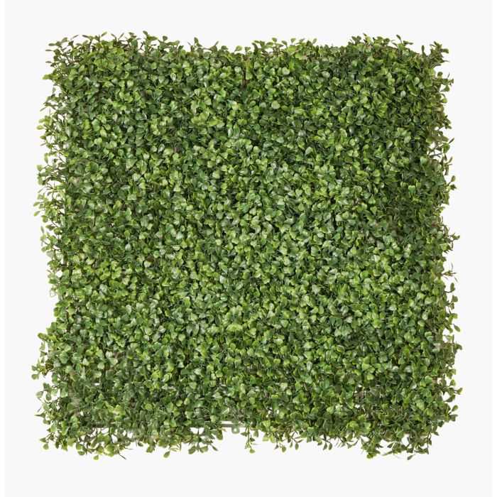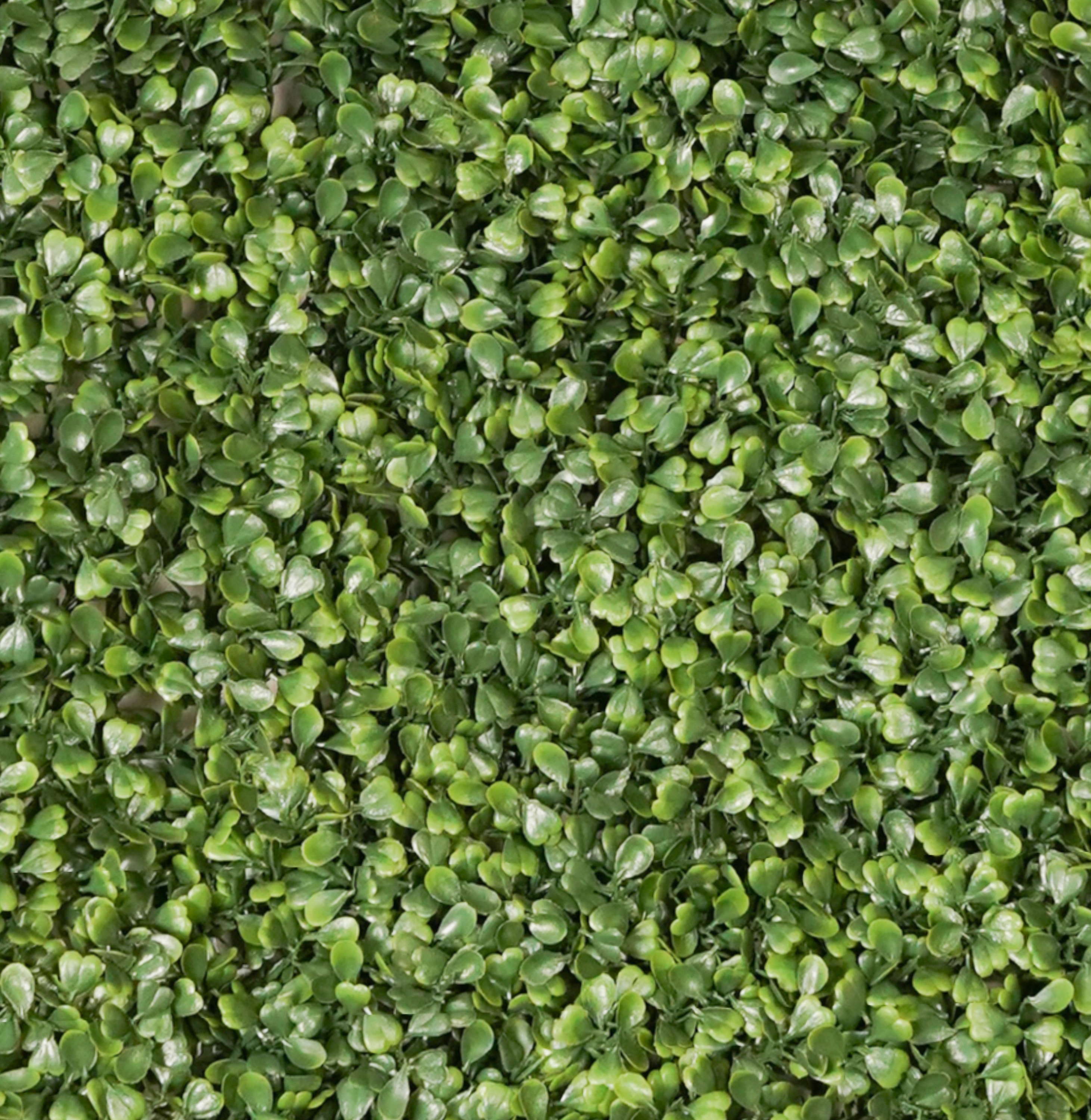 Dalle de buis artificiel HEINZ constitué de petites feuilles de couleur vert clair et foncé en forme de cœur. La plaque mesure env. 50 x 50 cm.
