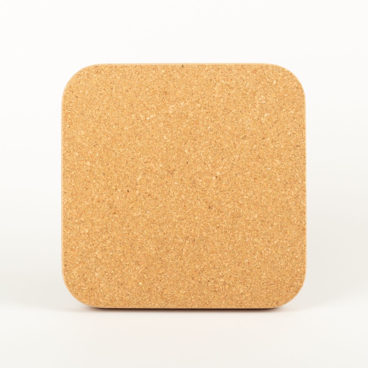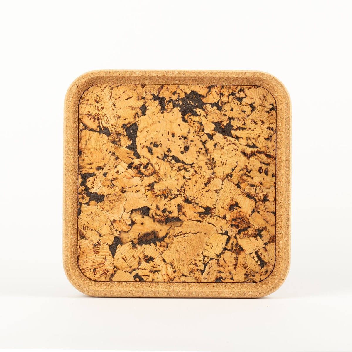 - En liège aggloméré de couleur noir-naturel, surface de service composée de grands morceaux de liège décoratifs, un liant est ajouté aux granulés de liège triés pour former le liège aggloméré, le liant - une colle de qualité alimentaire - fait office de liant naturel et permet aux particules de liège d'adhérer les unes aux autres tout en conservant leurs propriétés uniques