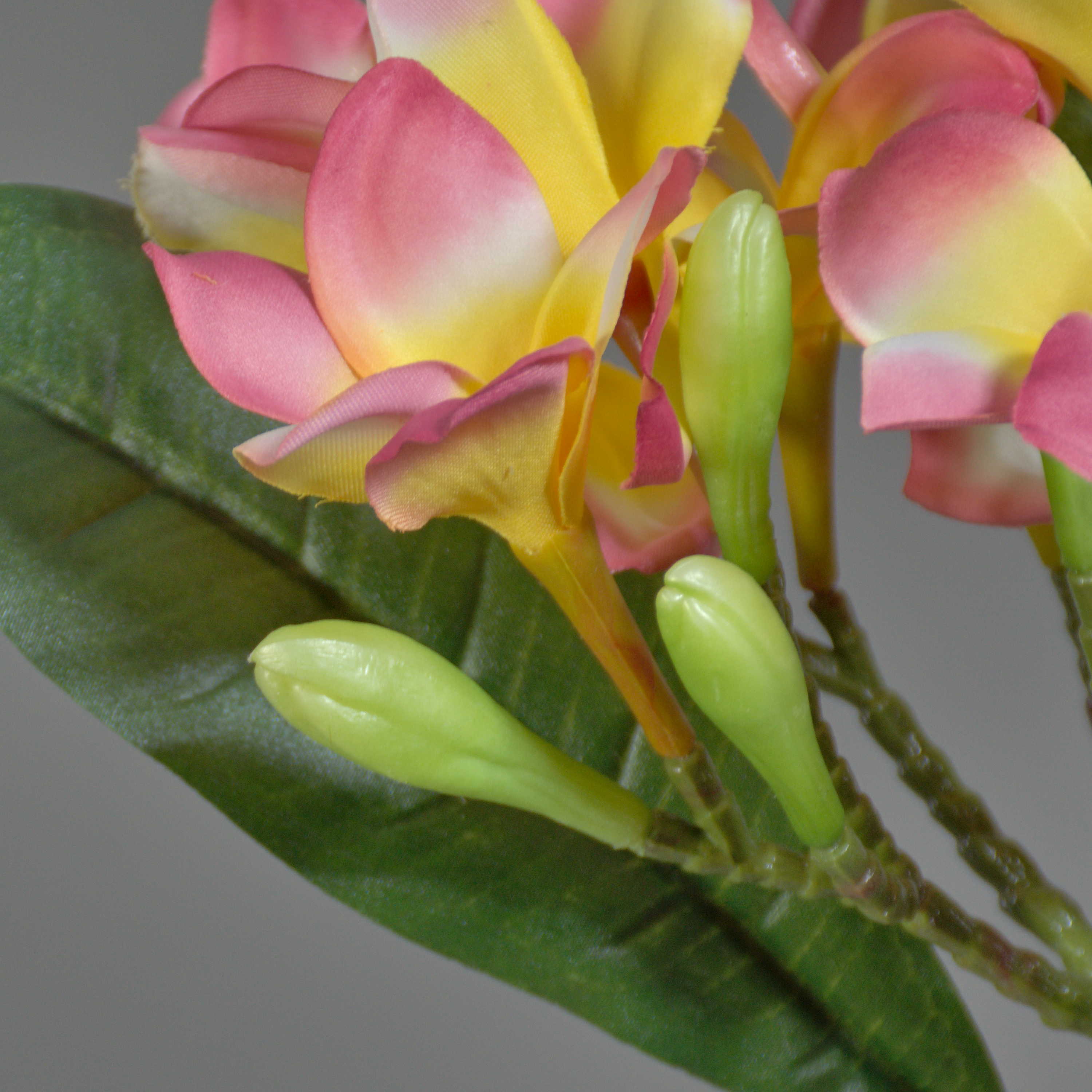 Plumeria en tissu ALDAH avec une longueur totale d'environ 70 cm de couleur rose-jaune.