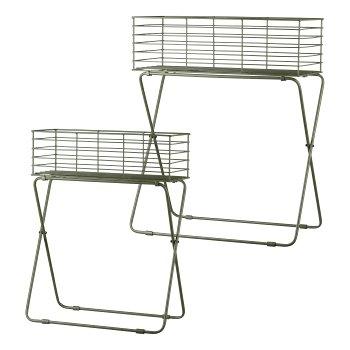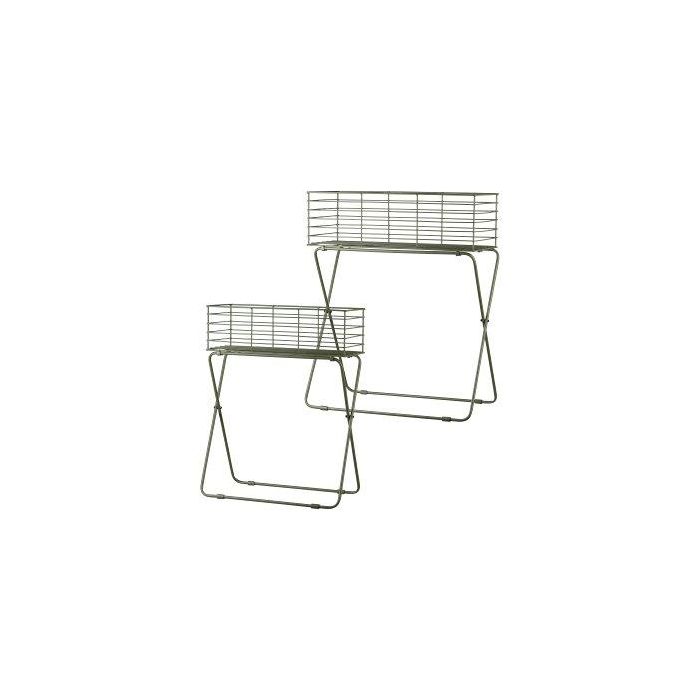 Porte-plante en métal Corbeille grillagée TOMOKO, 2 pièces, vert mousse, 50x24x64cm, 60x30x72cm