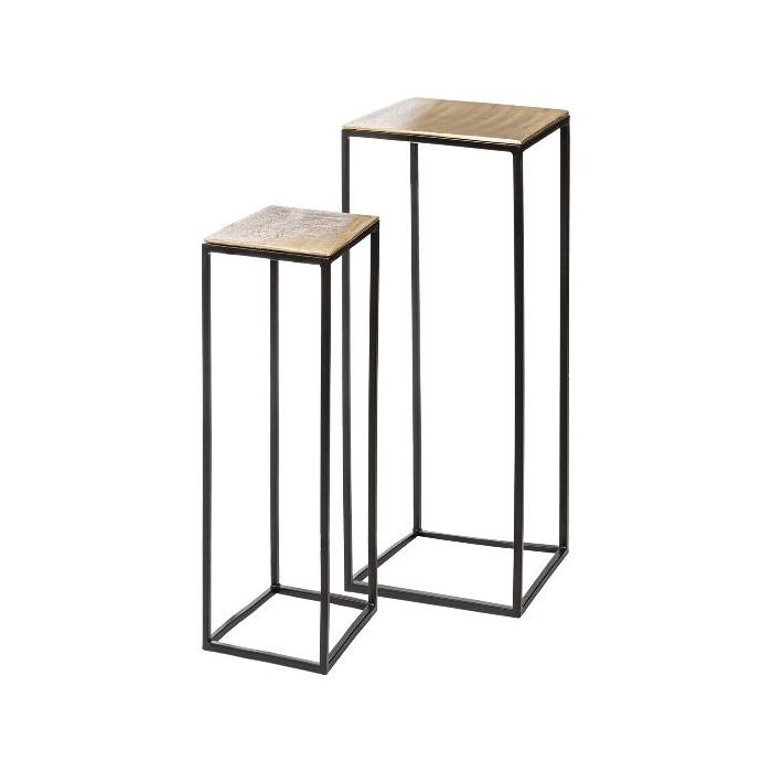 Porte-plante en métal WAKANDA, 2 pièces, noir-brun, 22x22x60cm, 25x25x80cm