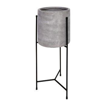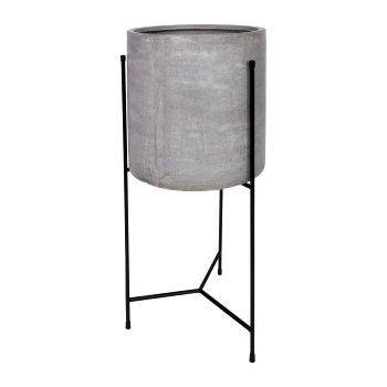 Pot à fleurs rond NARUKO avec un support métallique, 2 pièces, fibre de verre, gris, 35x75cm, 45x82cm