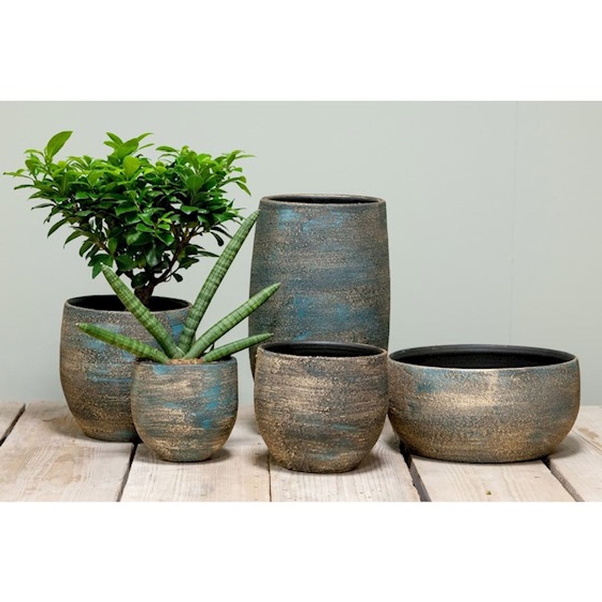 Pot à plantes en céramique AETIOS dégradé, bleu-or, 16cm, Ø17cm