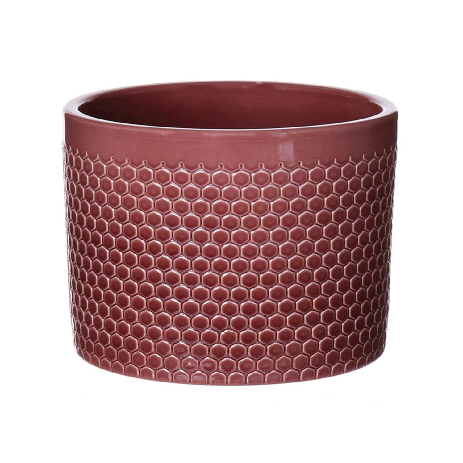 Pot à plantes en céramique CINZIA, motif à pois, rouge merlot, 22cm, Ø23cm