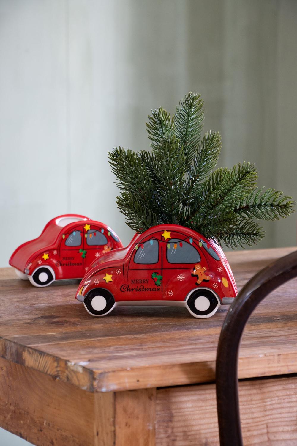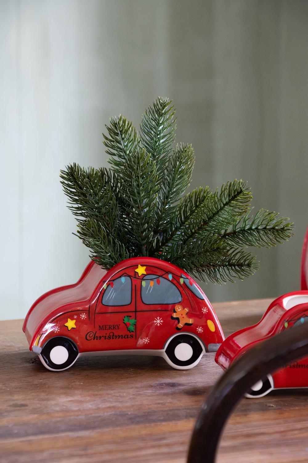 Pot à plantes en céramique en forme de voiture ARMAS, Noël, rouge, 19x12x11cm