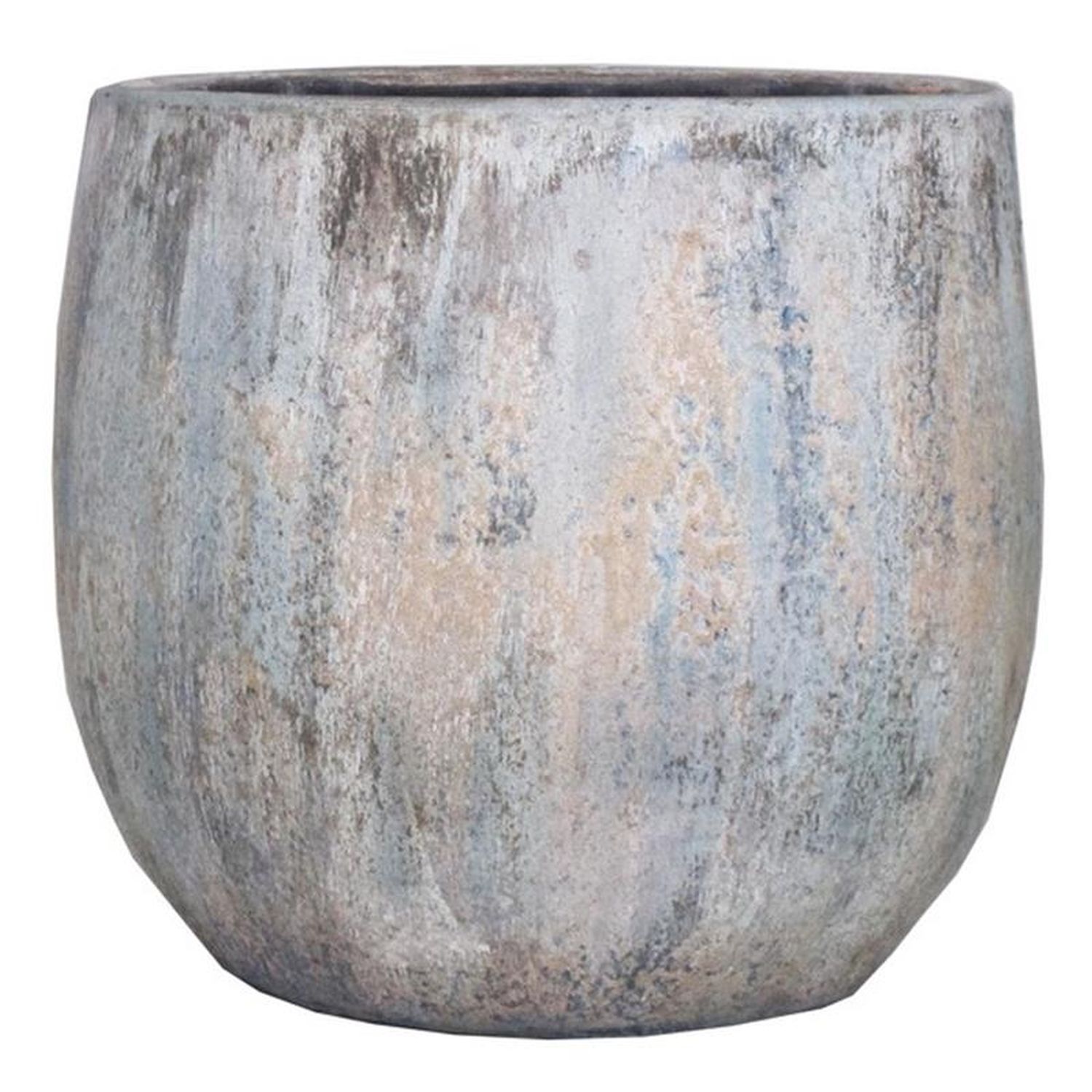 Pot à plantes en céramique MORTAZA avec veinures, bleu-beige, 31cm, Ø34cm