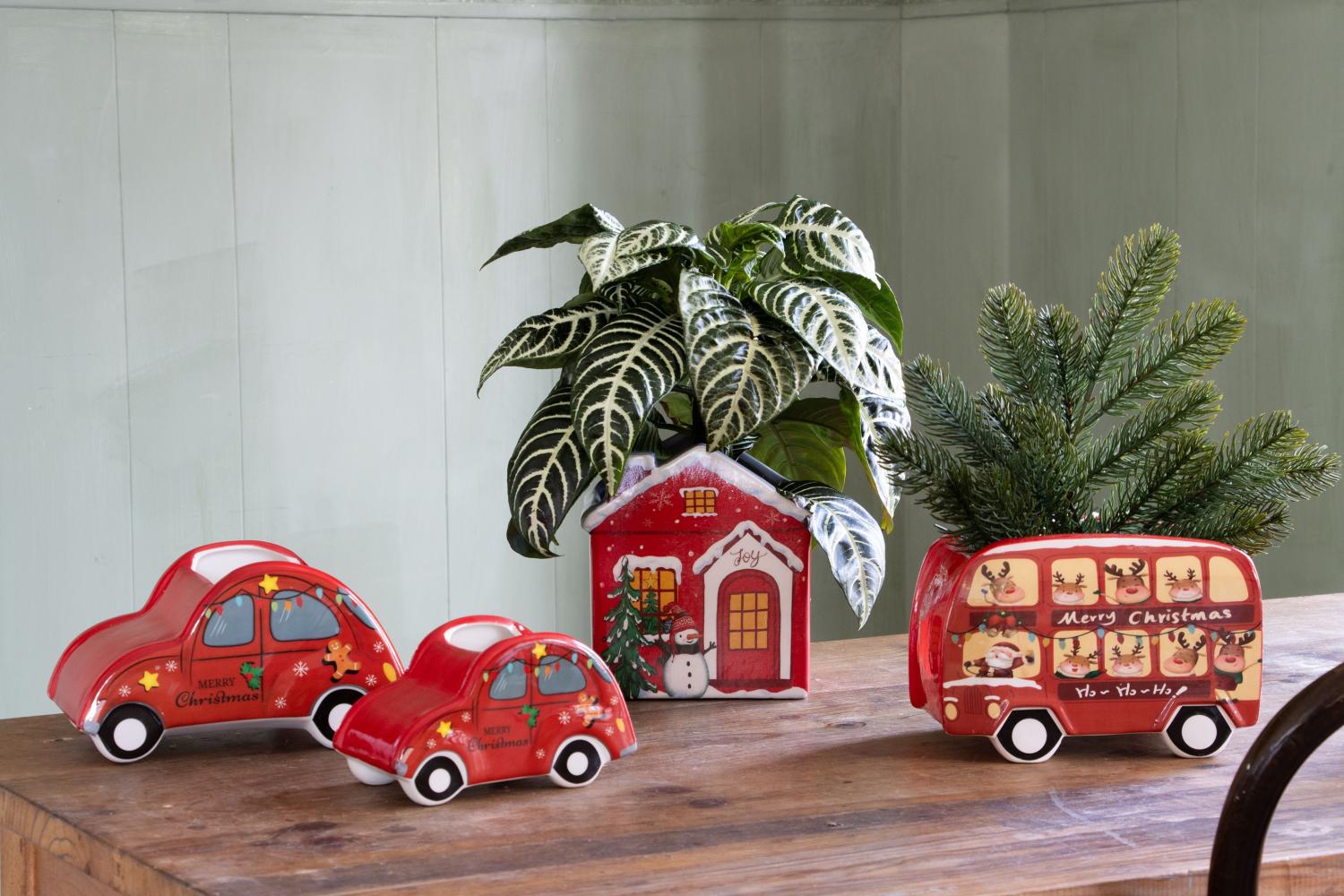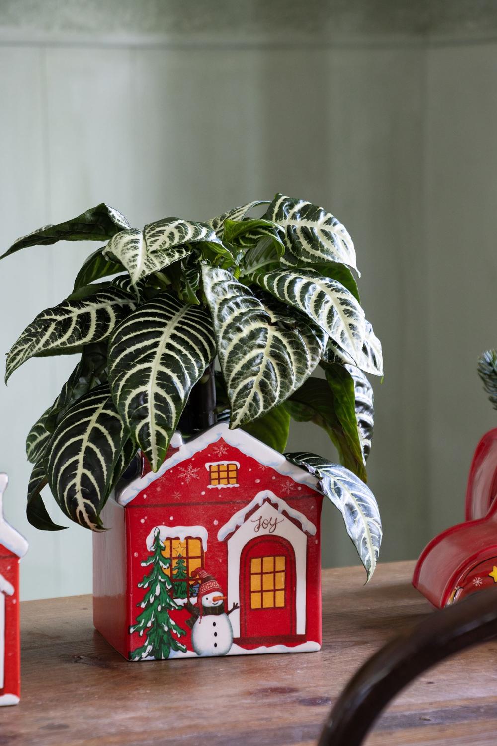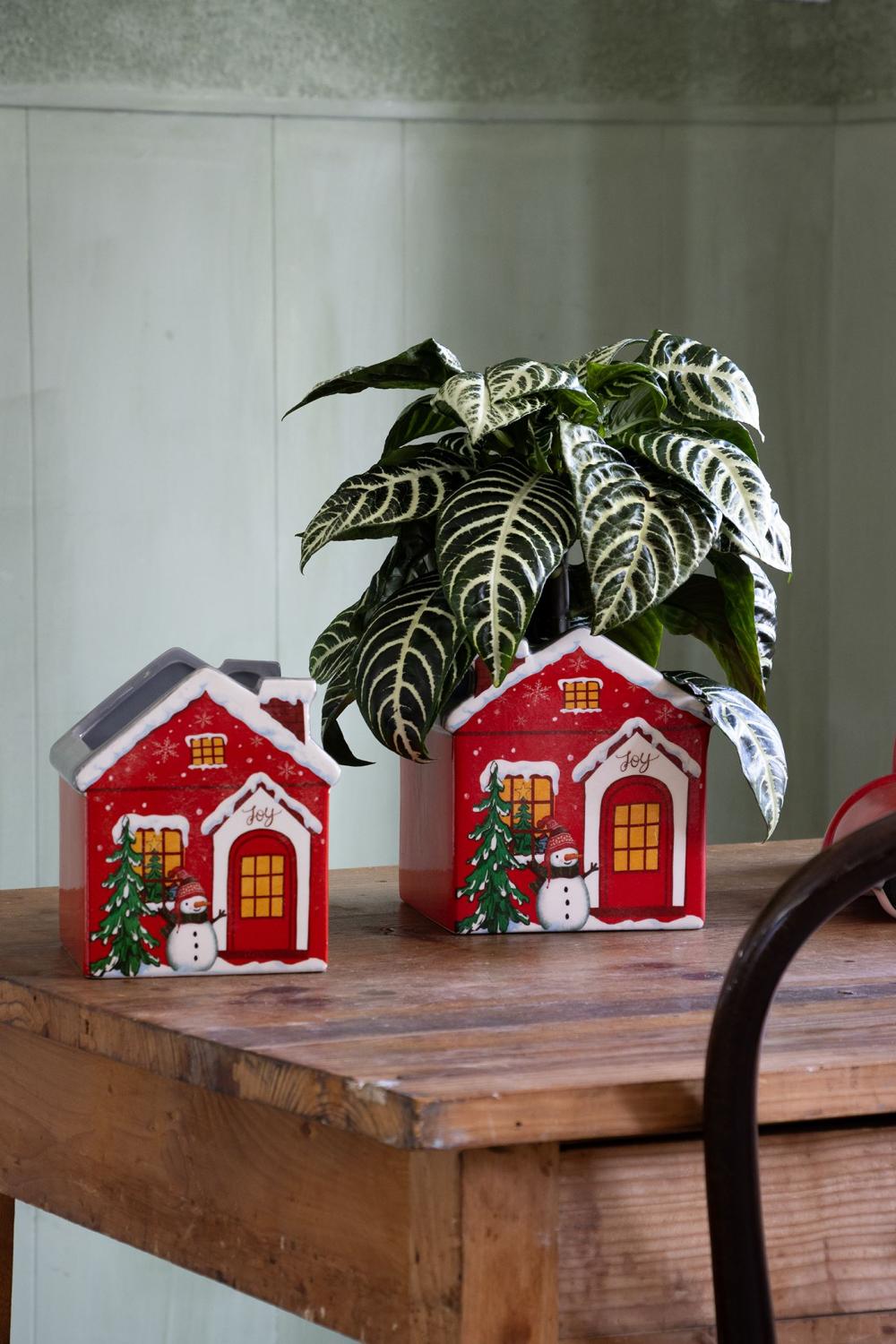 Pot à plantes en forme de maison en céramique ARMAS, Noël, rouge-blanc, 13x13x15cm