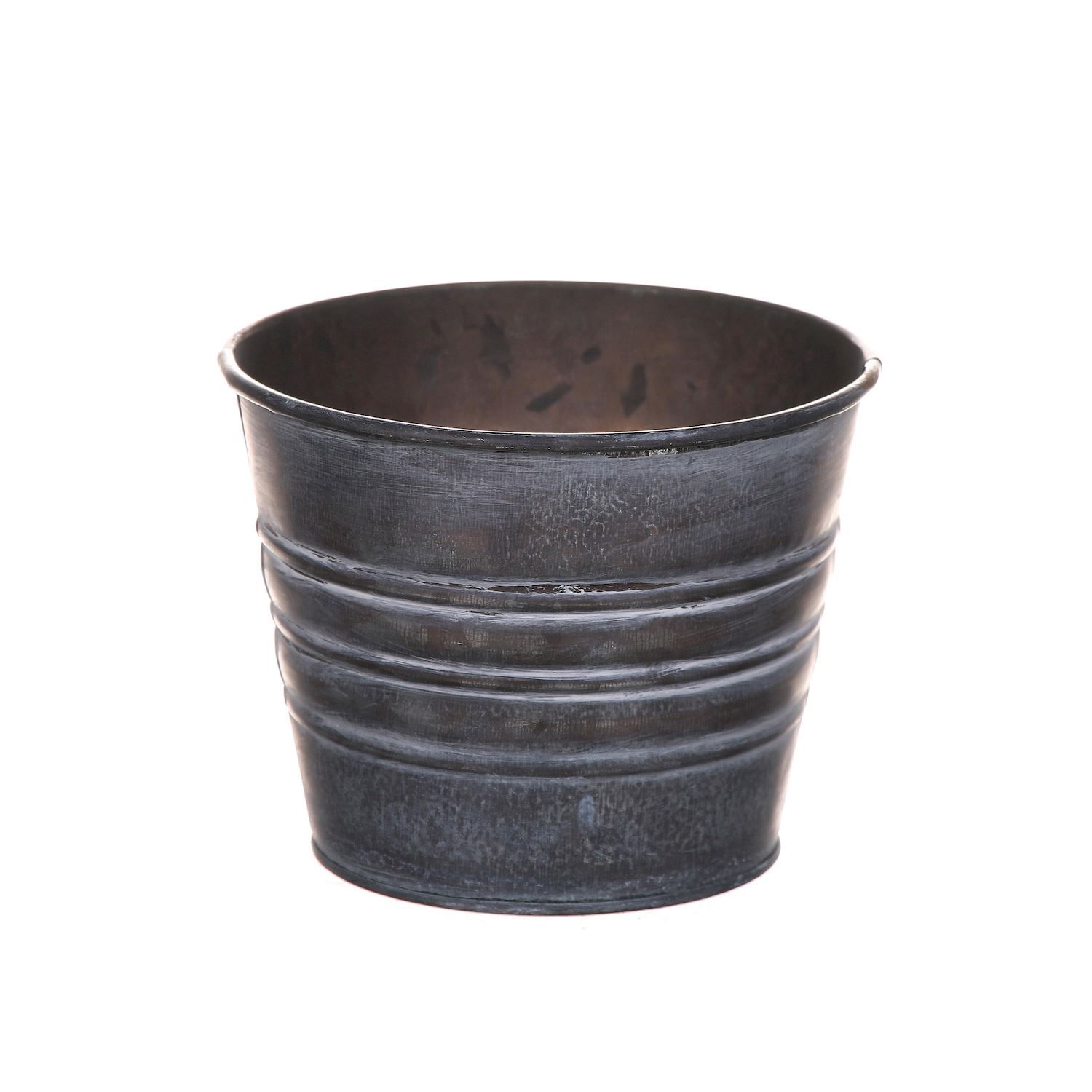 Pot à plantes rond MICOLATO avec rainures, zinc, gris, 9cm, Ø11,5cm