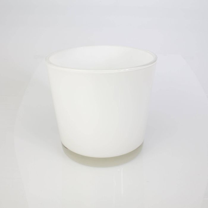 Pot de fleurs ALENA en verre, blanc, 16cm, Ø17cm