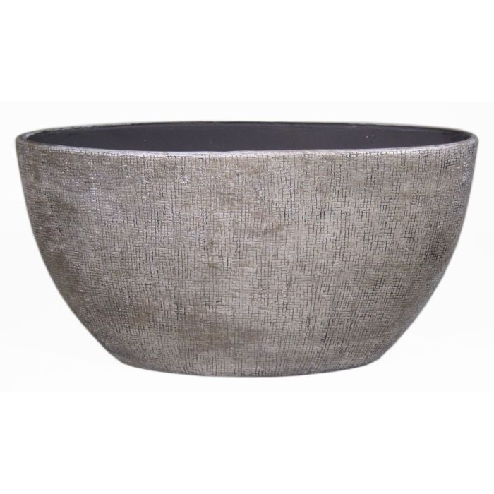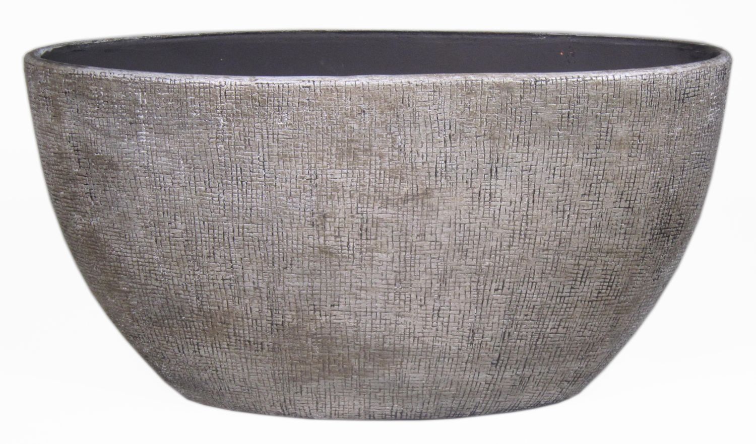 Pot de fleurs en céramique AGAPE ovale avec veinure, blanc-marron, 49x20x25cm