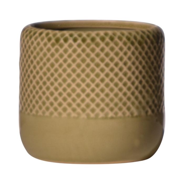 Pot de fleurs en céramique DANYLO, motif losange, vert-marron, 10,5cm, Ø12cm
