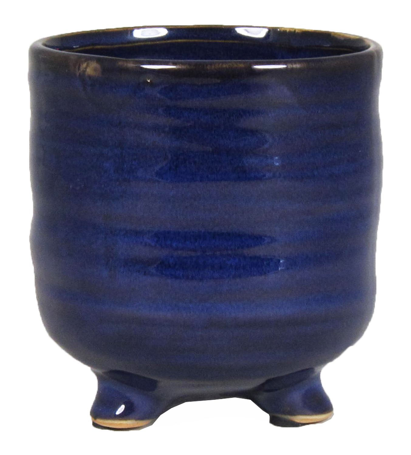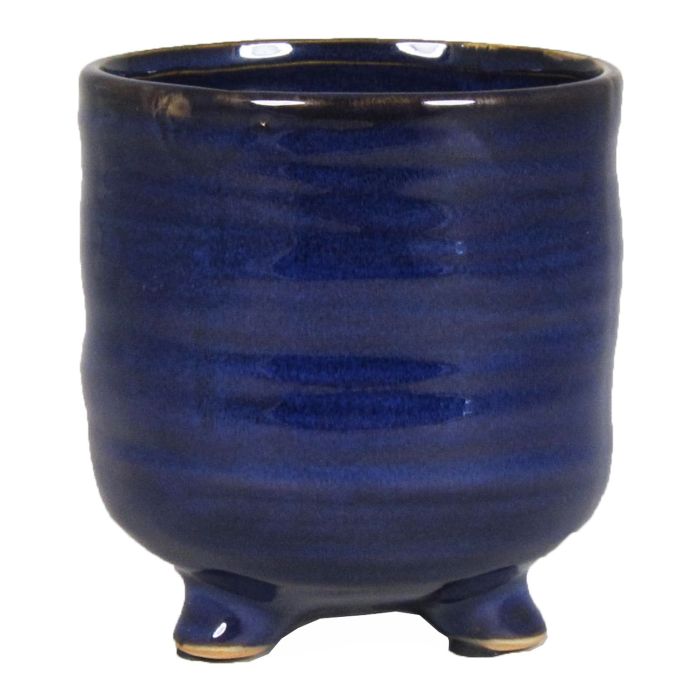 Pot de fleurs en céramique OISIN sur pieds, rainures, bleu, 14,5cm, Ø14cm