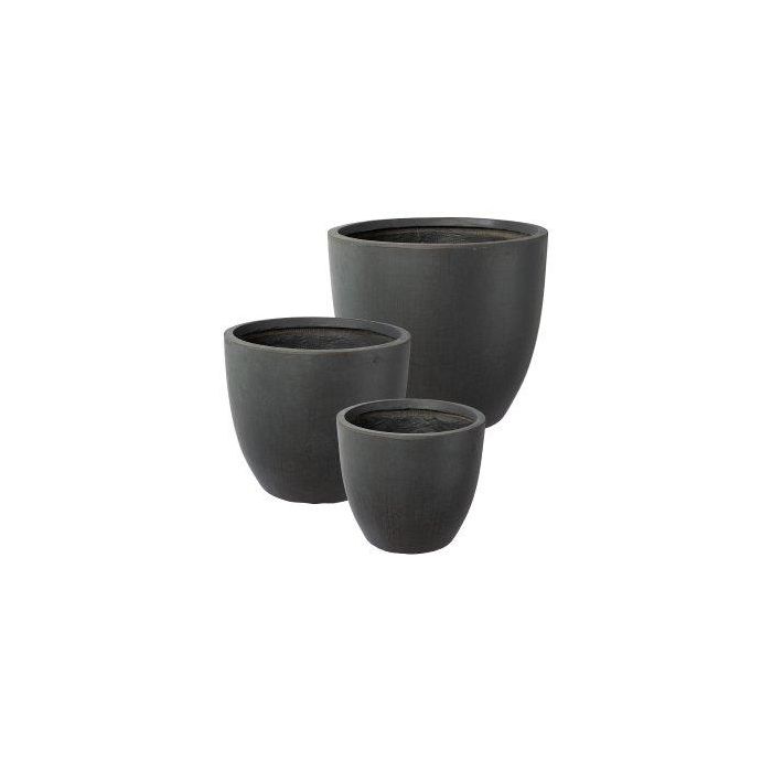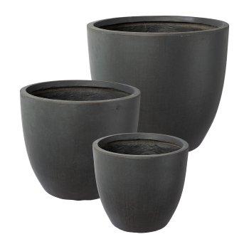 Pot de fleurs rond KIRIMA, 3 pièces, fibre de verre, anthracite, 25x27cm, 35x39cm, 44x52cm