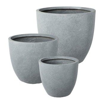 Pot de fleurs rond KIRIMA, 3 pièces, fibre de verre, gris, 25x27cm, 35x39cm, 44x52cm
