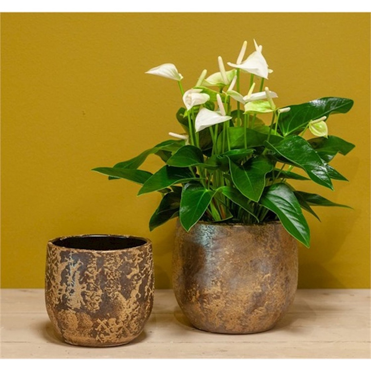 Pot en céramique au style rétro MAGO, aspect balayage, or, 14cm, Ø16cm
