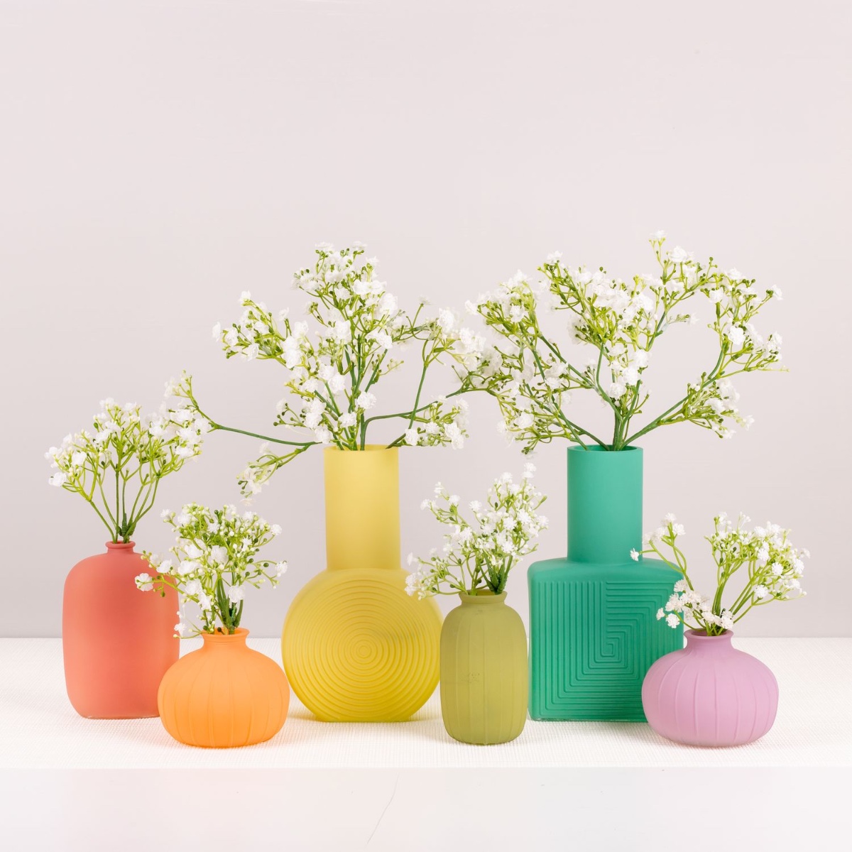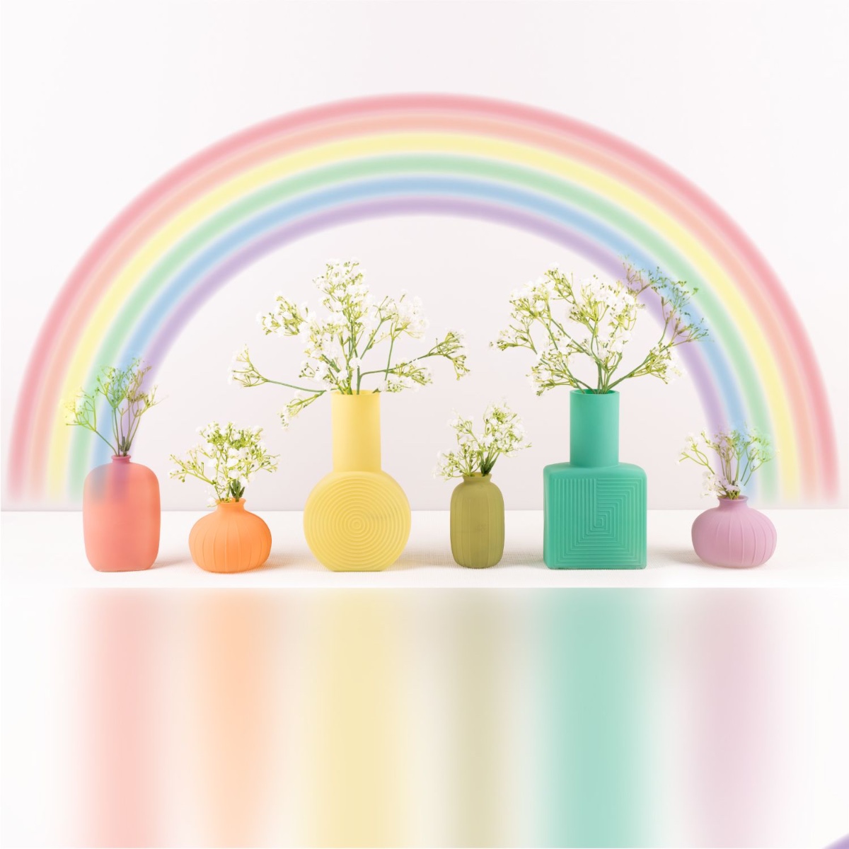 Les couleurs de l'arc-en-ciel ! Le monde est coloré et notre entreprise l'est aussi. Nous ne parlons pas seulement de notre assortiment coloré, mais de toute l'équipe. Peu importe d'où l'on vient, ce que l'on aime ou ce que l'on croit, chez artplants, nous sommes tous pareils. La surface mate et les délicates couleurs pastel de ces bouteilles se combinent à merveille pour former une séquence de couleurs arc-en-ciel. Un peu de gypsophile pour agrémenter le tout et la décoration de table est prête, par exemple pour un mariage entre personnes de même sexe. Shop the Look!