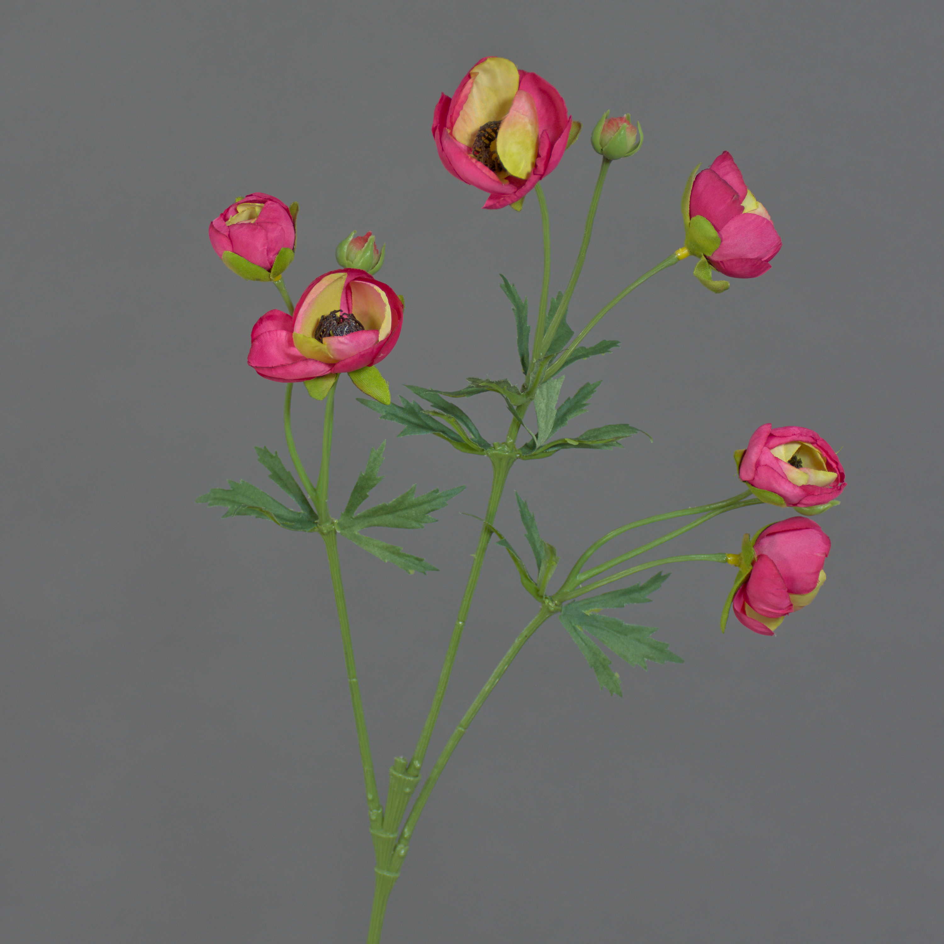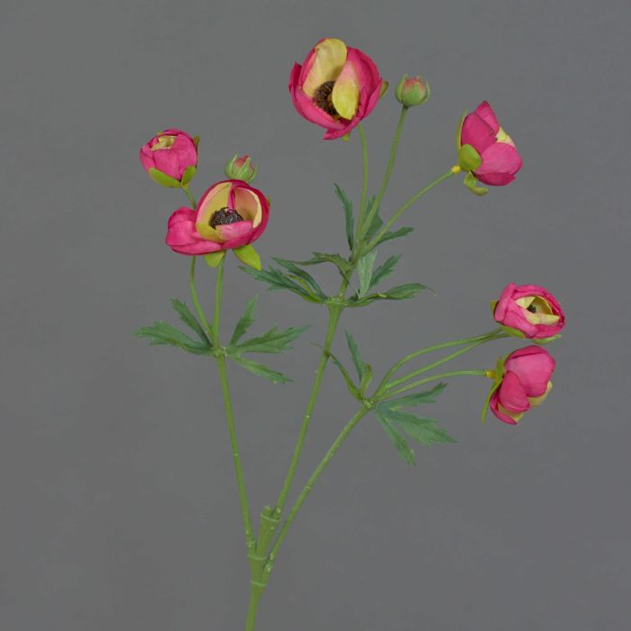 Renoncule artificielle YARIS, rose fuchsia-vert, 65cm, Ø3-4,5cm
