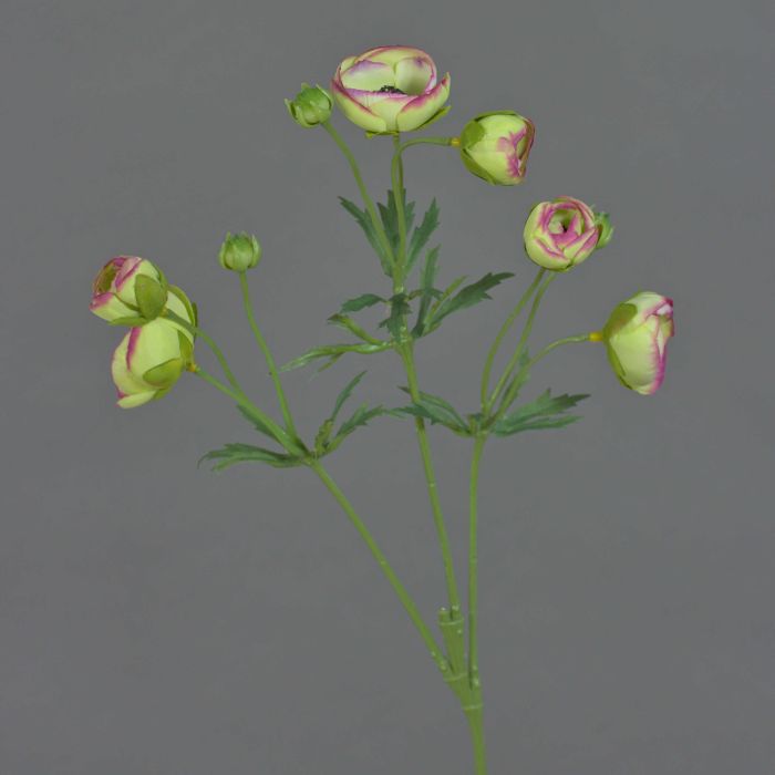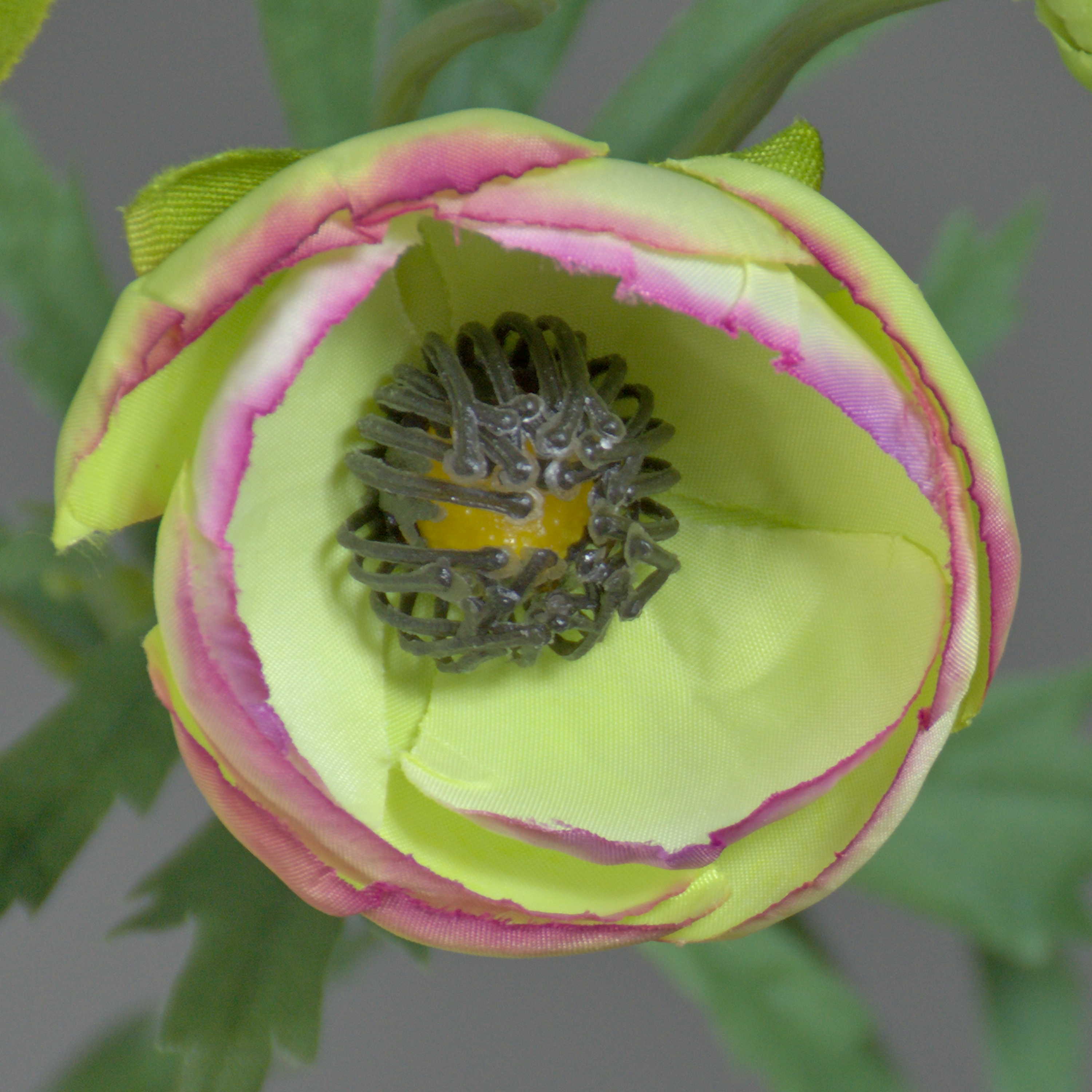 La renoncule artificielle YARIS en vert-rose fuchsia sera idéale pour créer une composition florale en l'associant avec des fleurs et des graminées et fera un bel effet dans votre salon, par exemple.