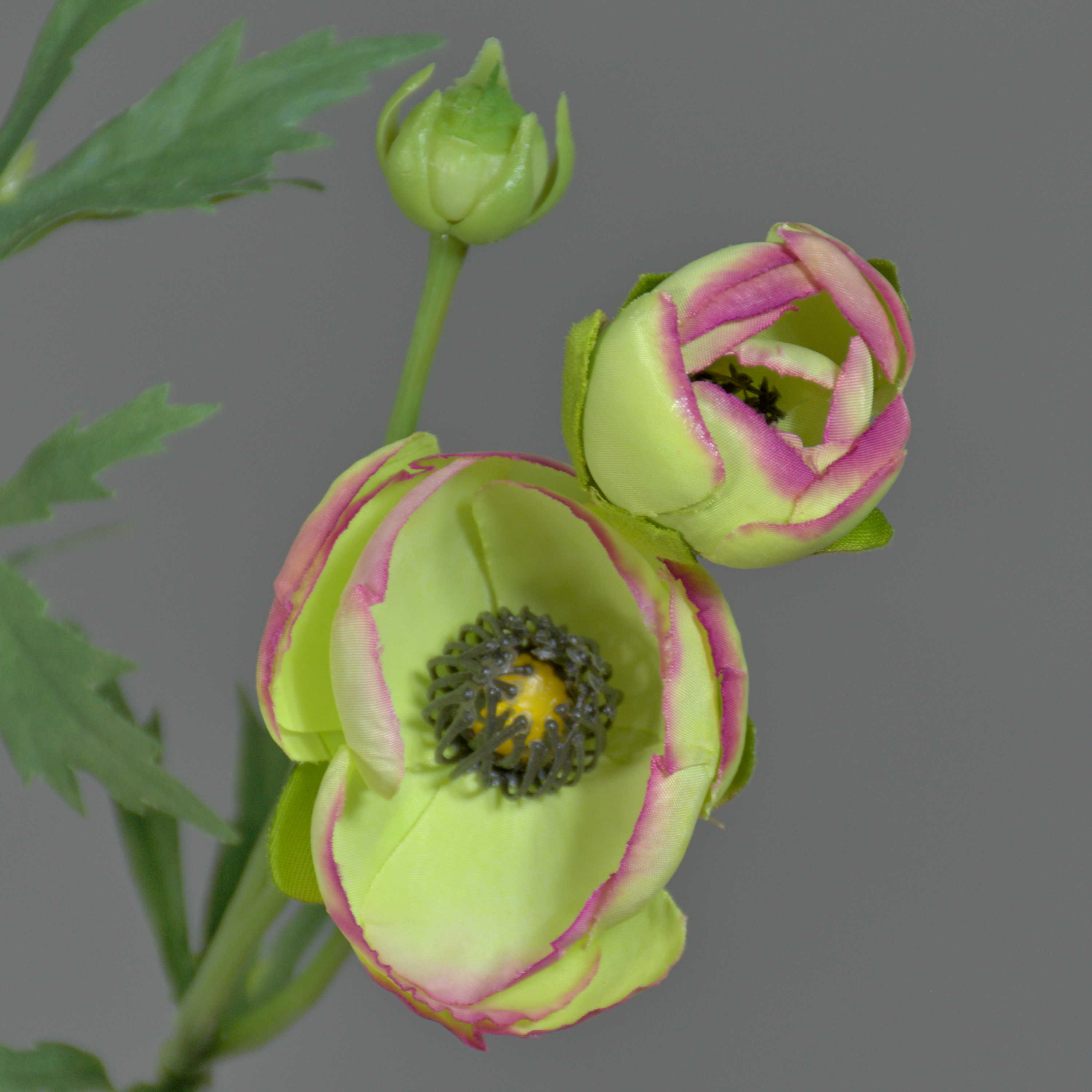Renoncule en tissu YARIS, vert-rose fuchsia, 65cm, Ø3-4,5cm