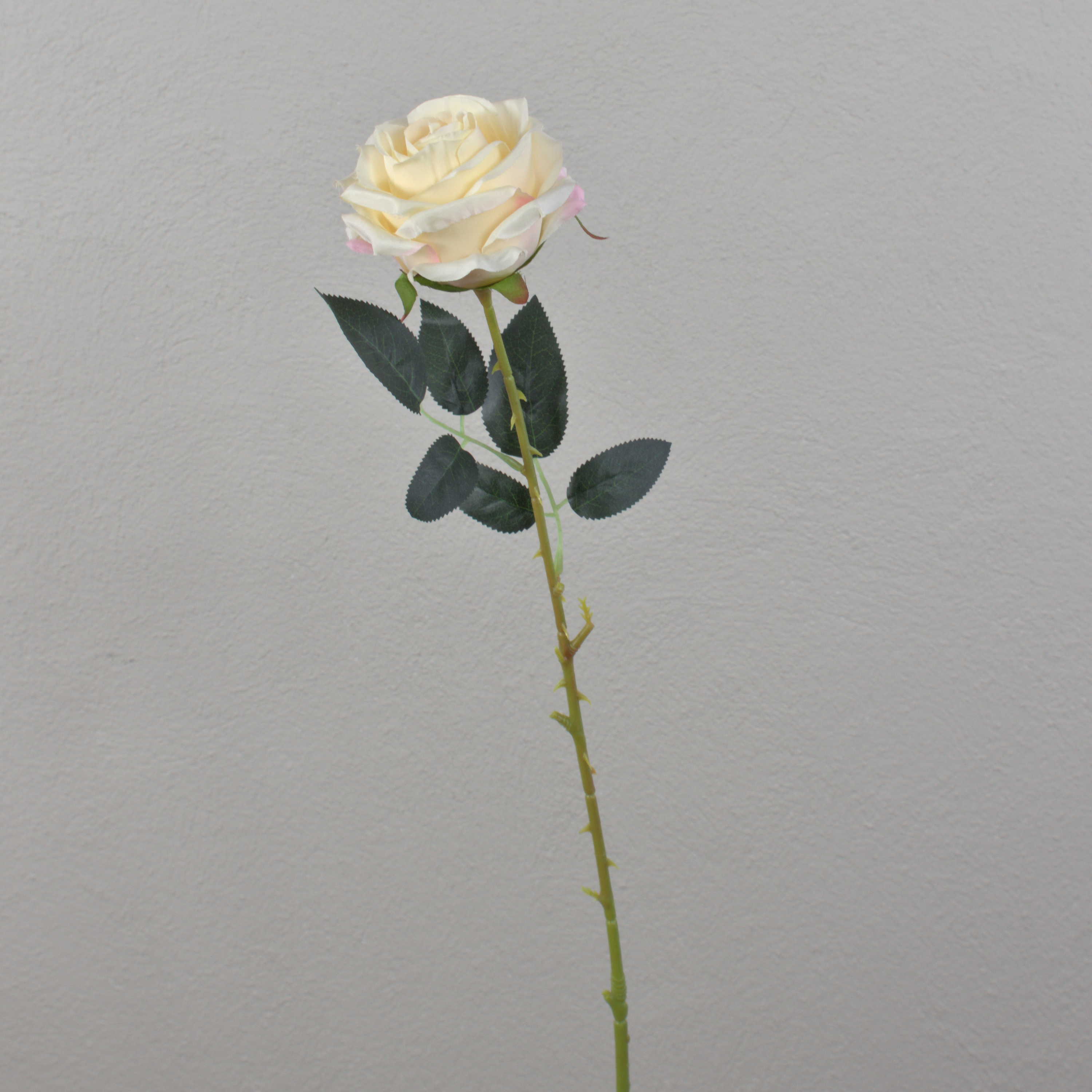 La fausse rose ELEAZAR de couleur crème-abricot mesure environ 65 cm de long. Sa finition de qualité supérieure lui donne un aspect naturel.