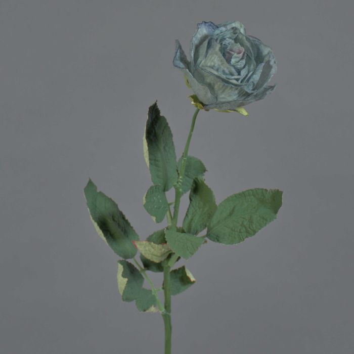 Rose artificielle FREIDA, collection écologique, gris-bleu clair, 65cm, Ø7cm