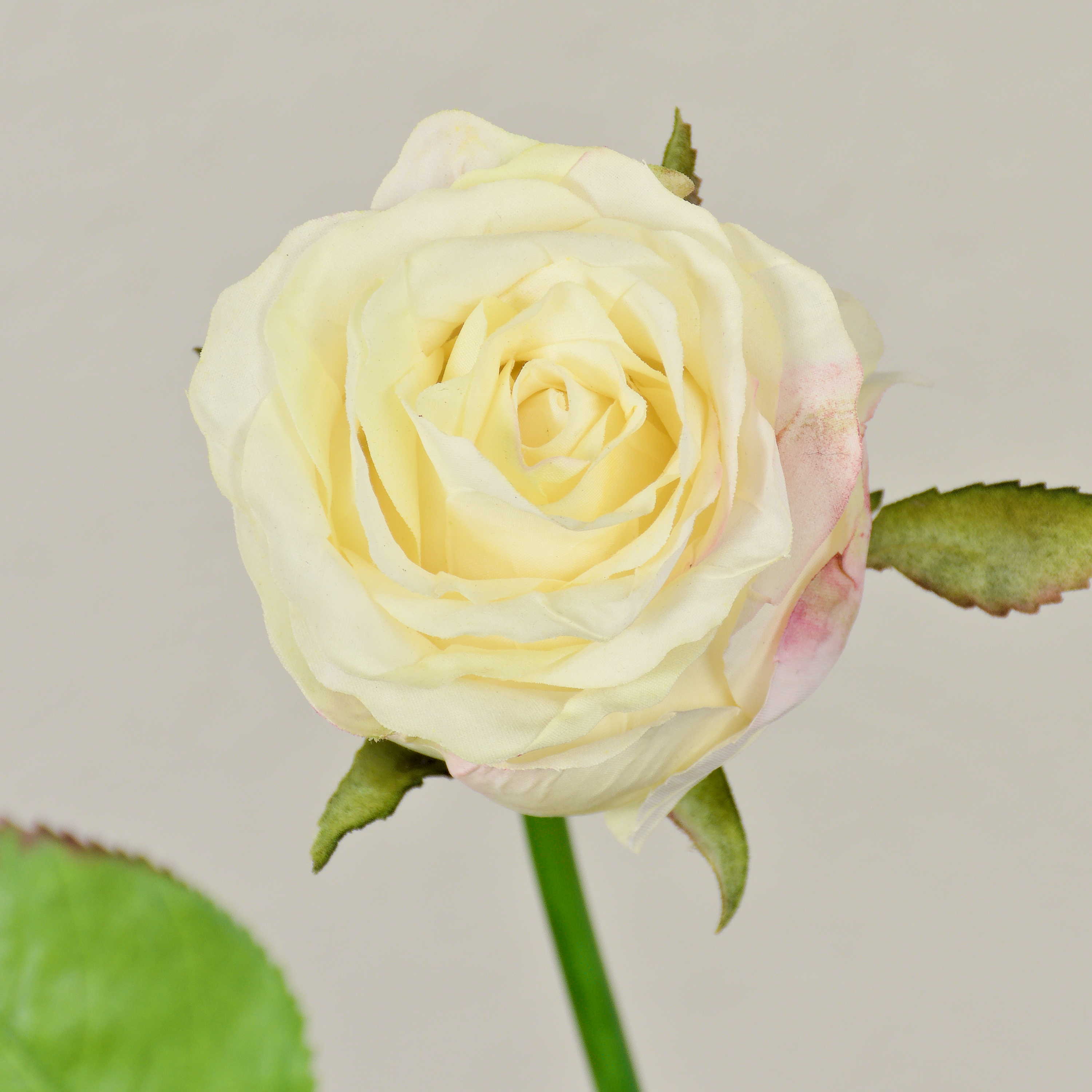 Rose artificielle OPHELIE, crème-rose, 85cm, Ø7cm