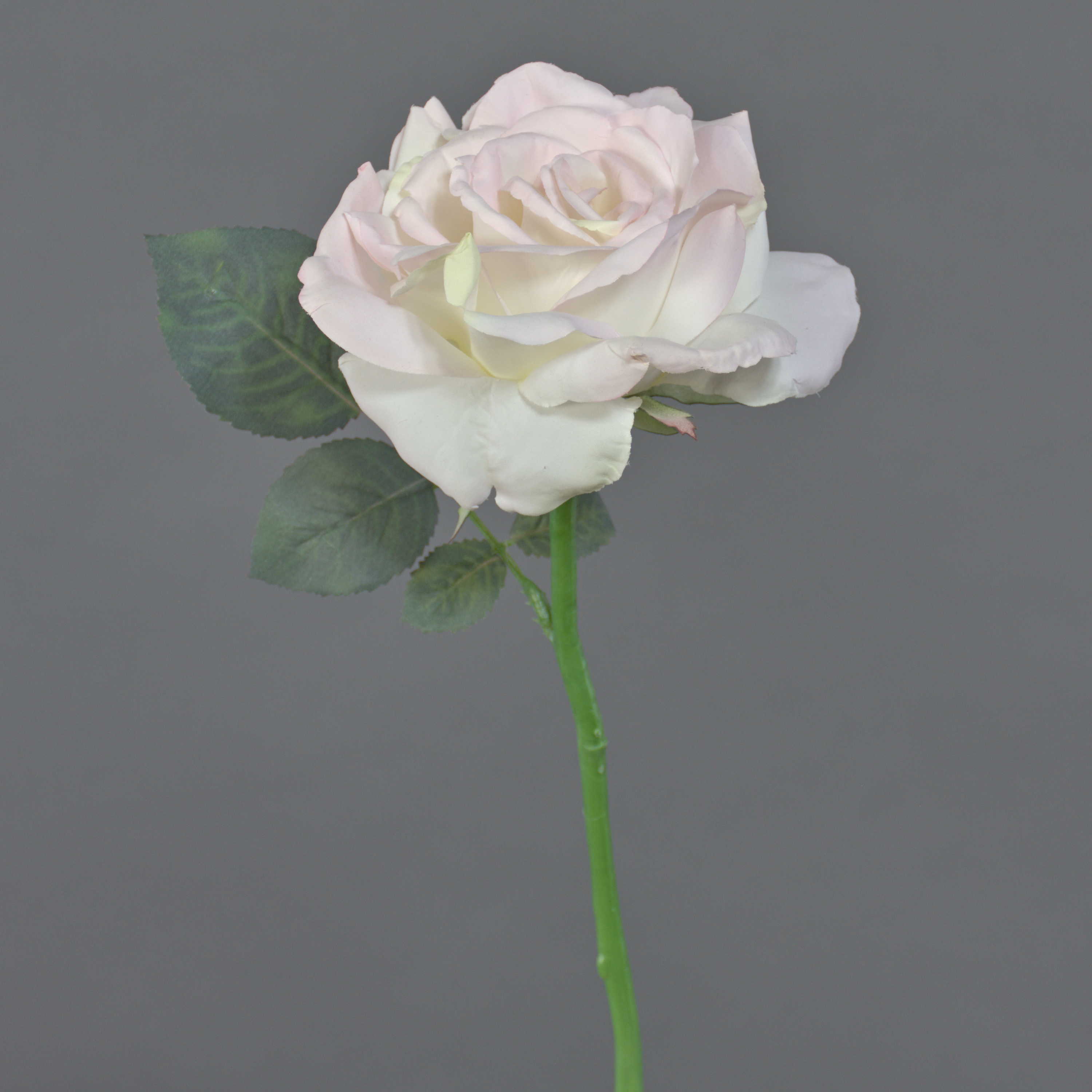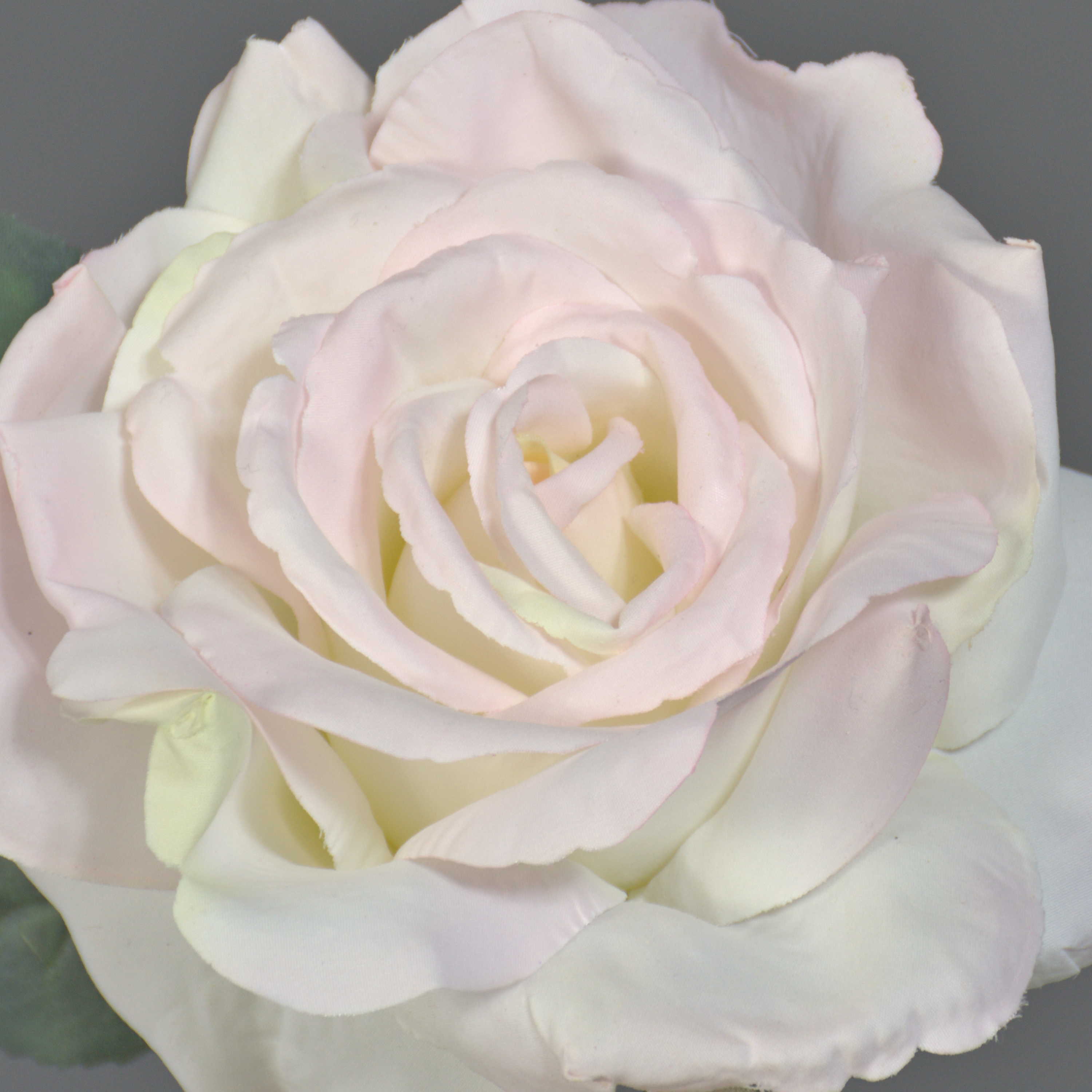 Cette rose en soie QUINZY est ornée d'une fleur géante de couleur crème-vert et de quelques feuilles vertes en matière textile. La petite rose décorative a une longueur d'environ 30 cm et un diamètre de la fleur d'environ 12 cm.