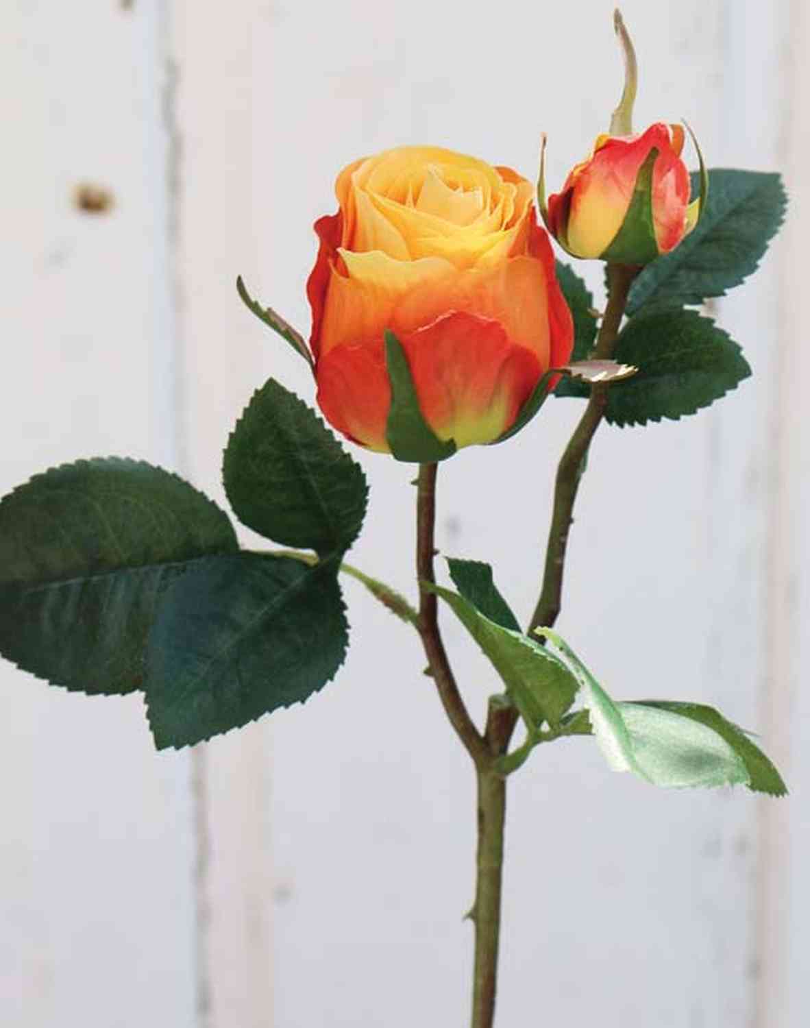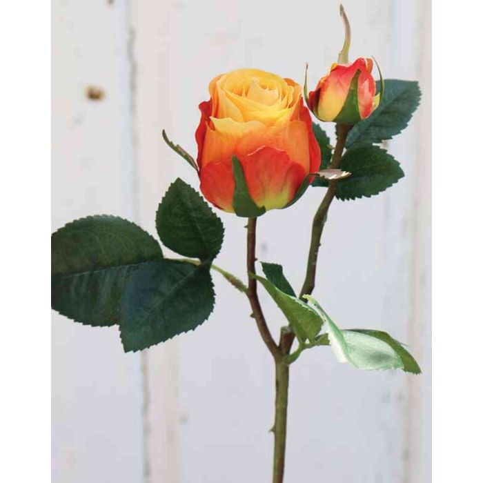 Rose artificielle sur tige RENESMEE avec quelques feuilles et un bouton, idéale pour constituer de jolis bouquets colorés.