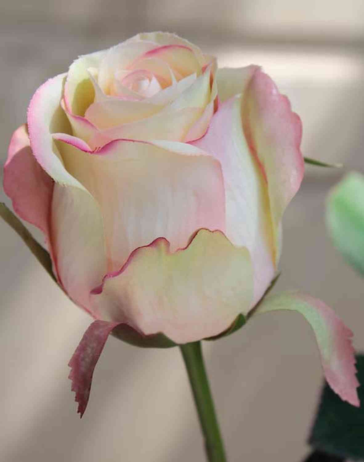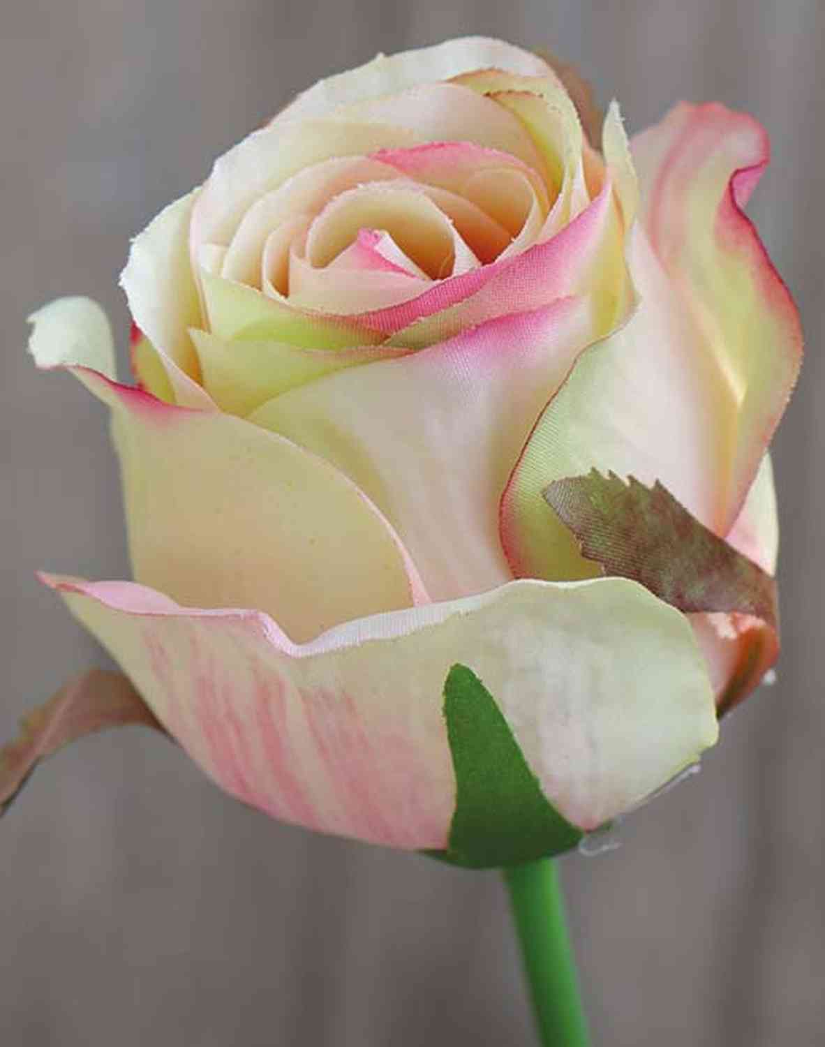 Rose artificielle SAPINA semi-ouverte à disposer seule dans un soliflore ou en bouquet, par ex. pour décorer un restaurant, un comptoir d'accueil, dans la salle à manger, la cuisine, etc.