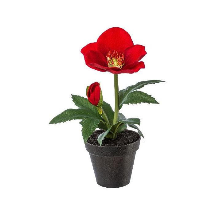 Rose de Noël en velours ANSIK en pot décoratif, rouge, 19cm
