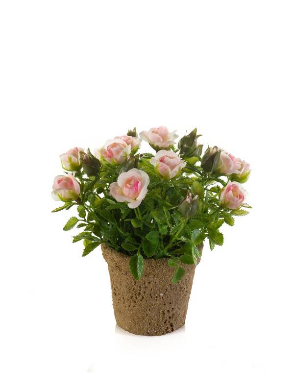 Rose en soie LARAINA en pot décoratif, rose, 15cm