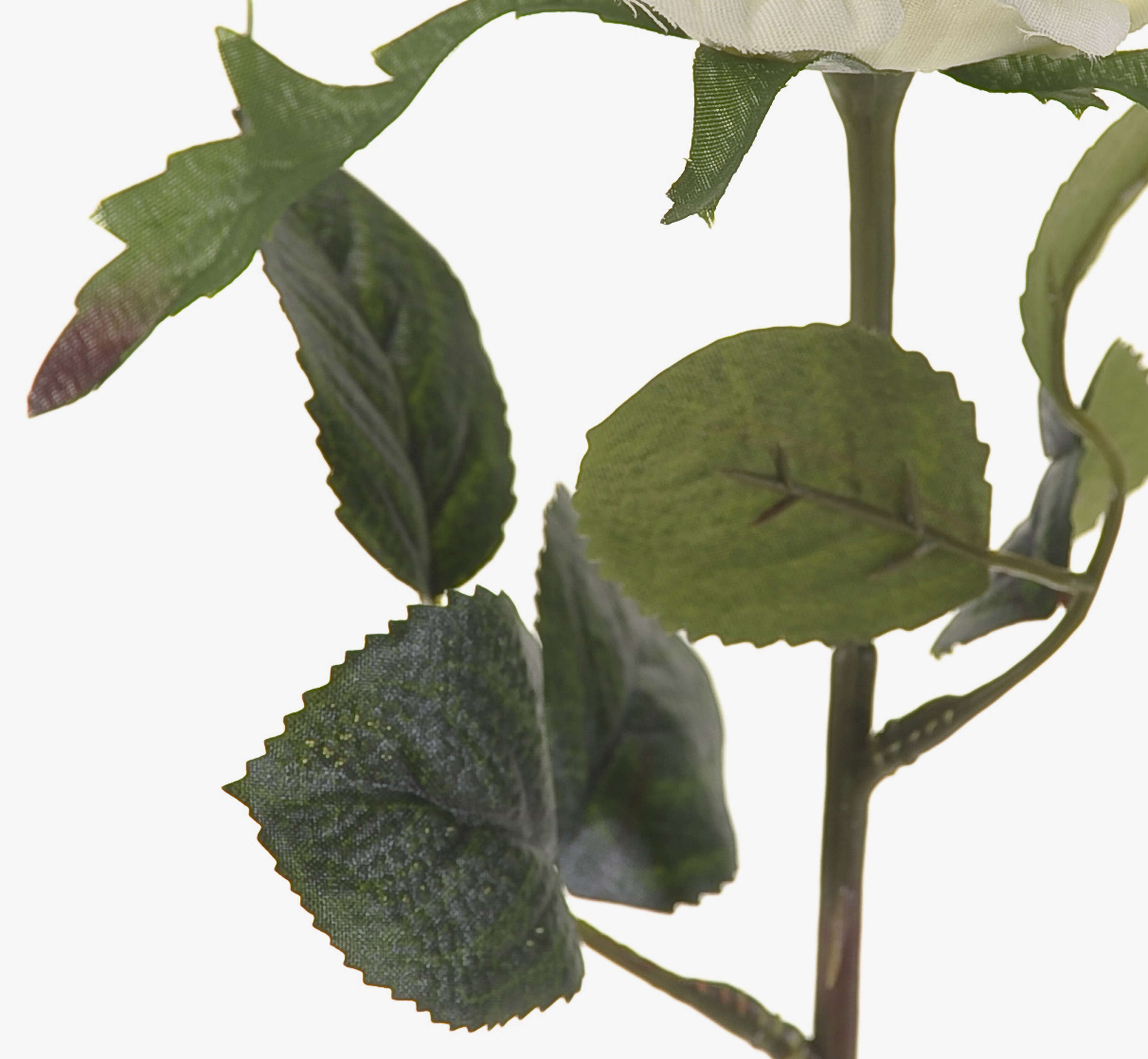 La belle rose artificielle SIMONY de couleur crème est pourvue de feuilles vertes. Cette rose décorative mesure au total environ 45 cm de long et a un diamètre de la fleur d'environ 8 cm.