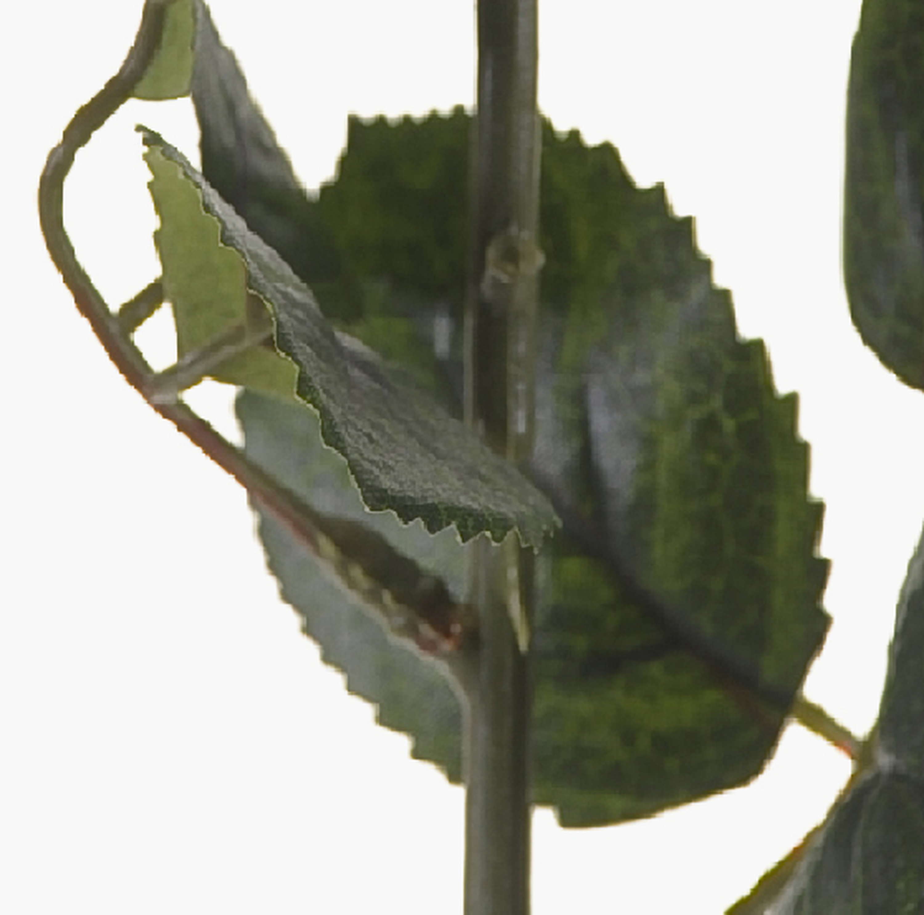 - Constituée d'une fleur ouverte aux finitions soignées et minutieuses de couleur rose-rose fuchsia et de beaucoup de feuilles vertes, le tout est fabriqué à partir de fibre textile